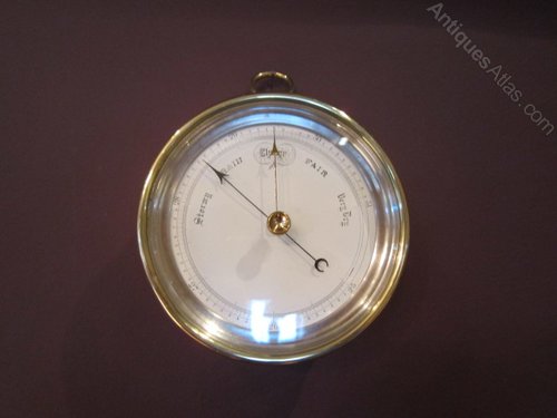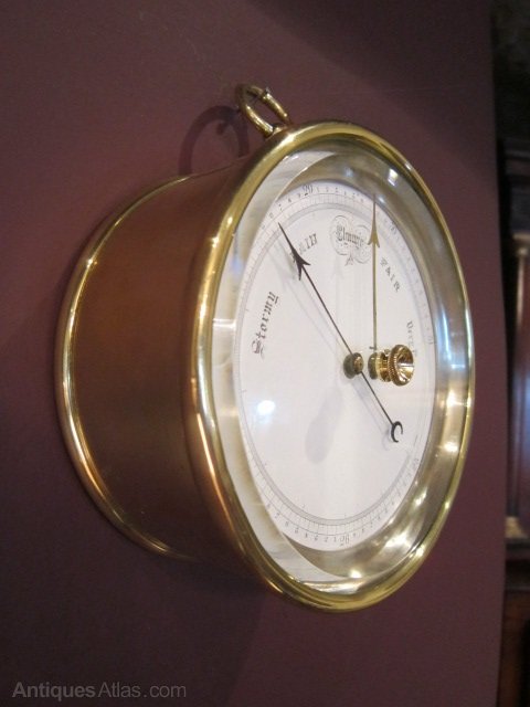 A Top Quality Mid Victorian polished brass marine barometer.c.1880. Enamel dial and bevelled glass front. Made by Jefferson of London, stamped to the movement. Full working order. Measures 5"diameter x 2"deep.