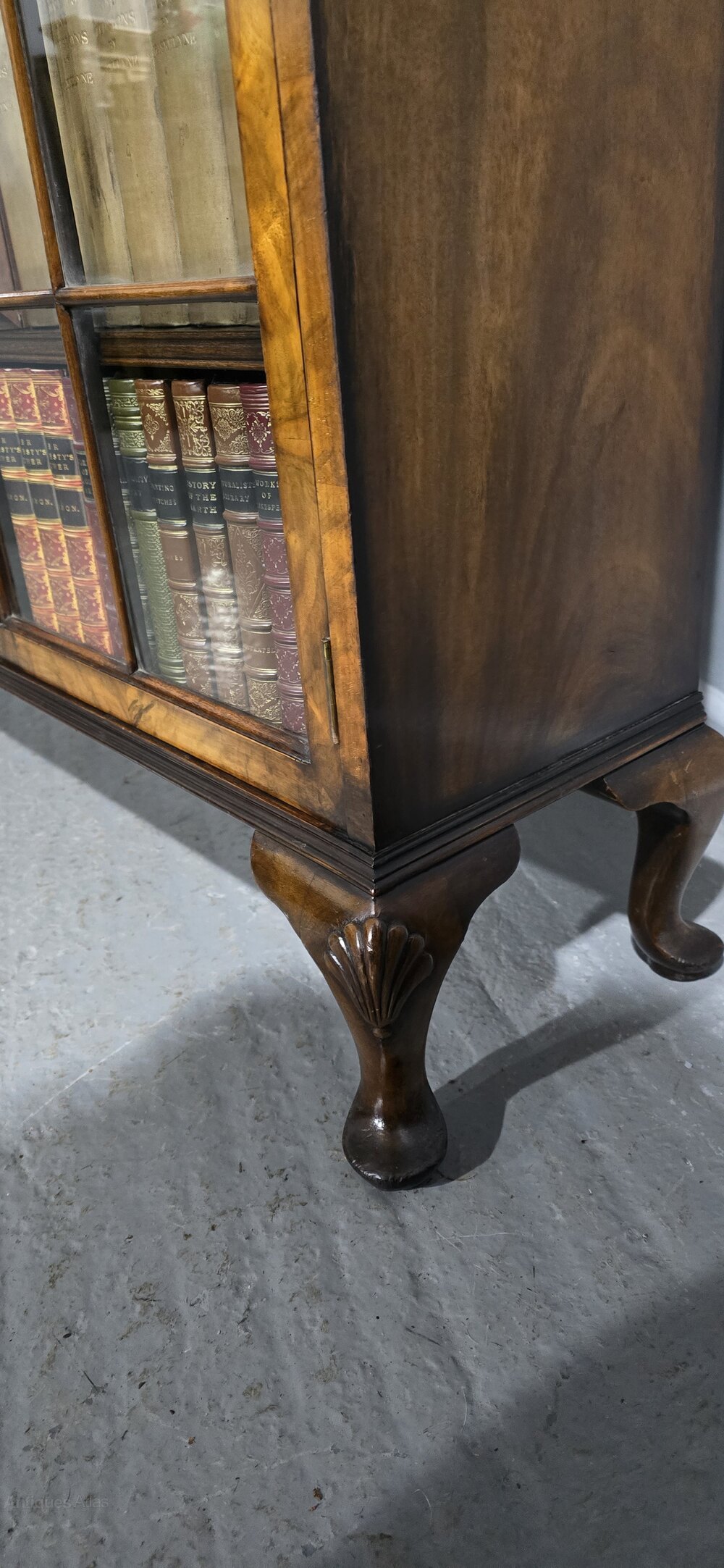 George I style figured-walnut cabinet bookcase