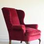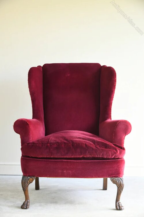 Traditional Style Wing Back Armchair. Upholstered Georgian style armchair, wing back with sprung back and seat, loose down seat cushion on small cabriole legs and paw feet