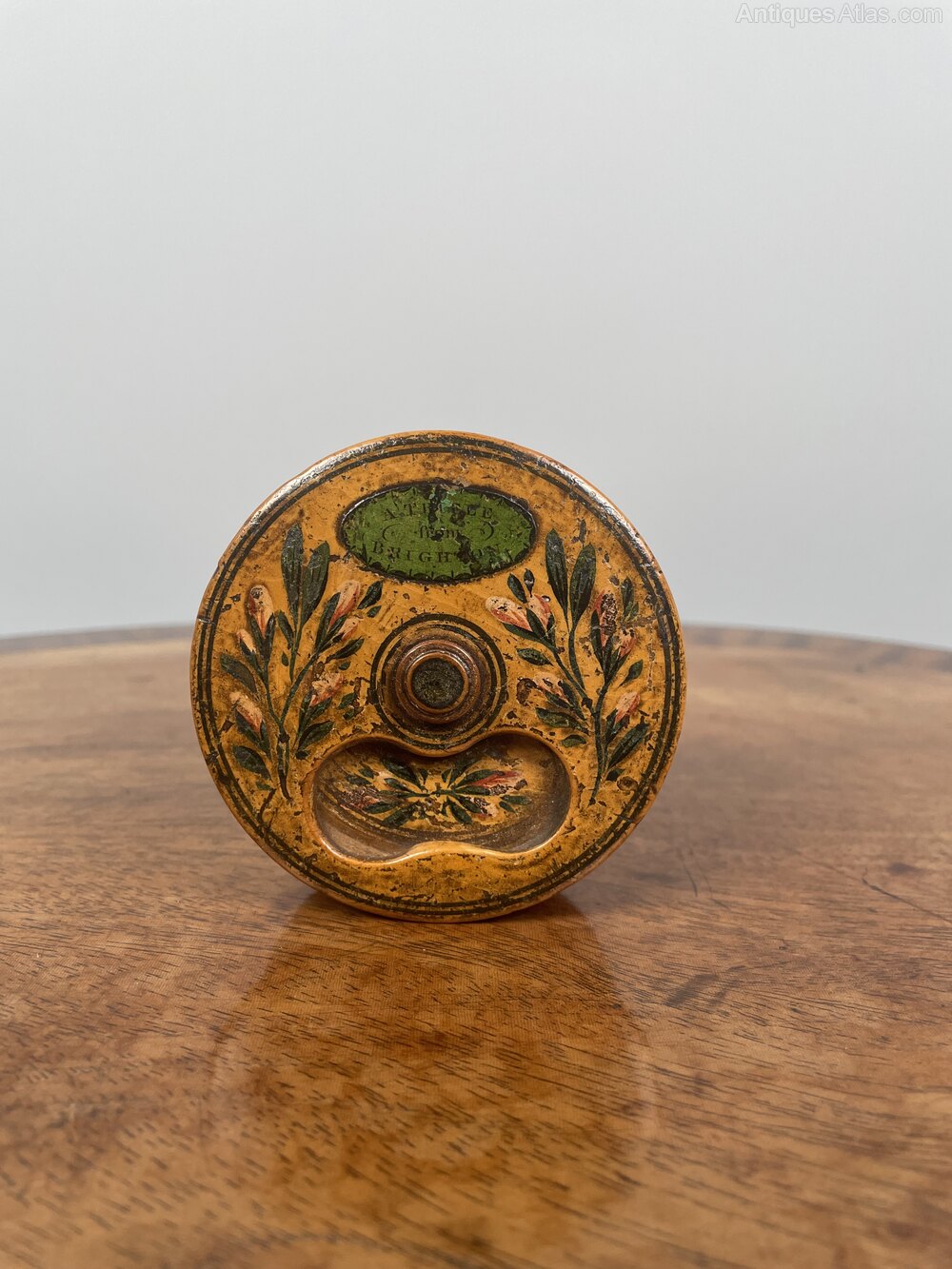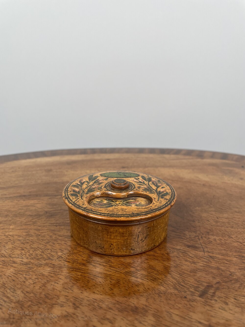 An early 19th century Tunbridge Ware white wood miser’s snuff box.