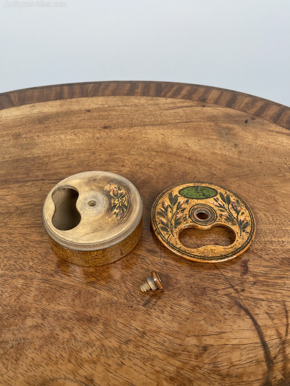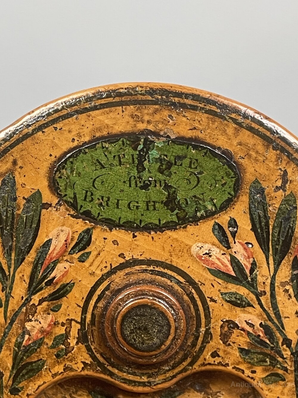 Hand painted decoration of flowers and applied green paper label “A Trifle from Brighton”