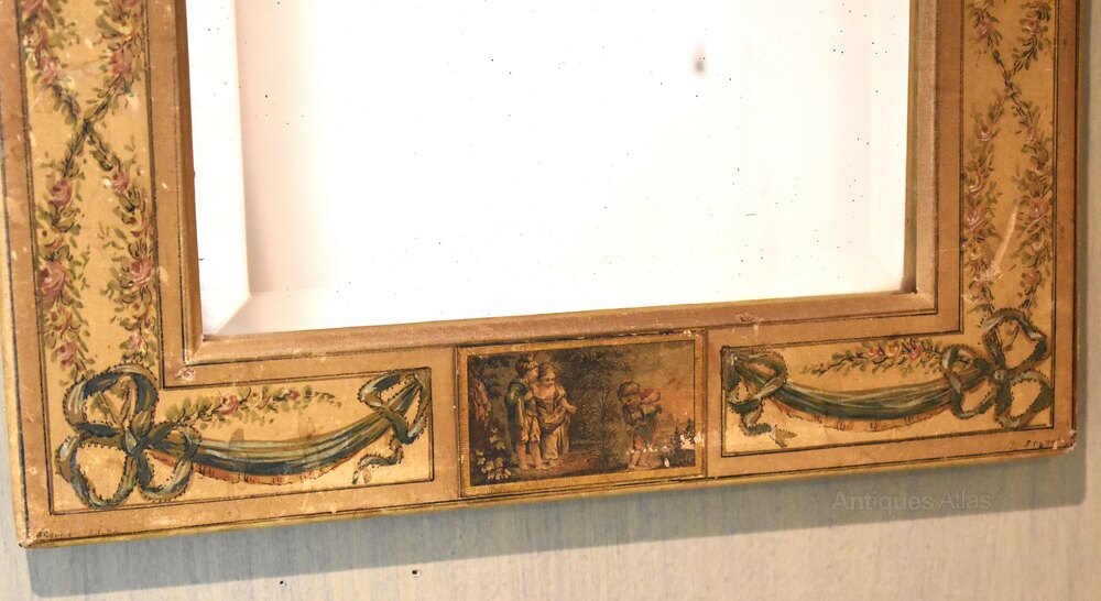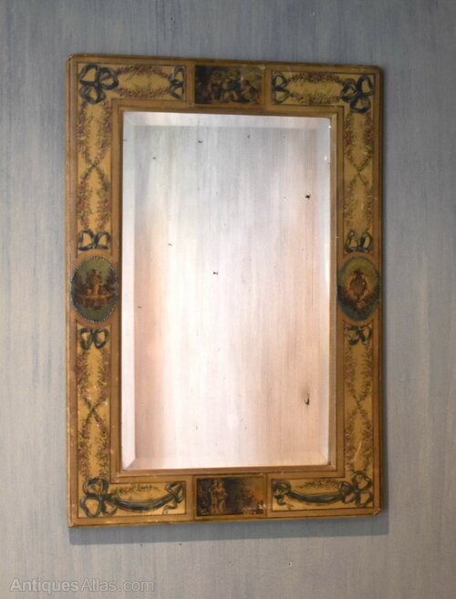 Unusual Painted Silk Mirror