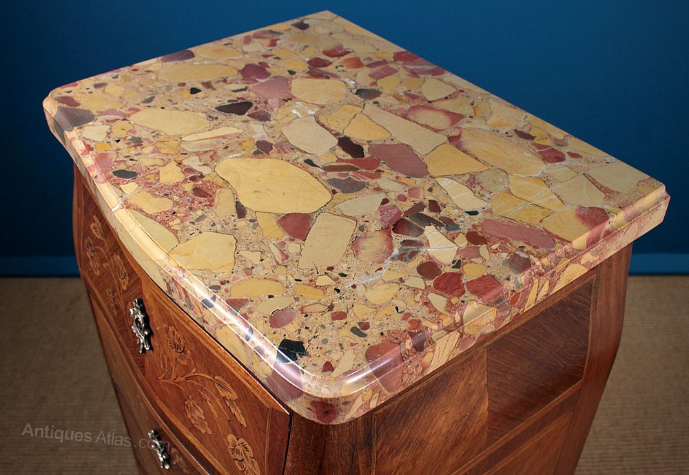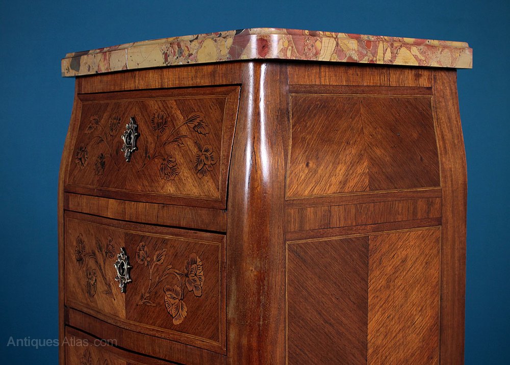 Parquetry & Marble Top Bombe Commode c.1930