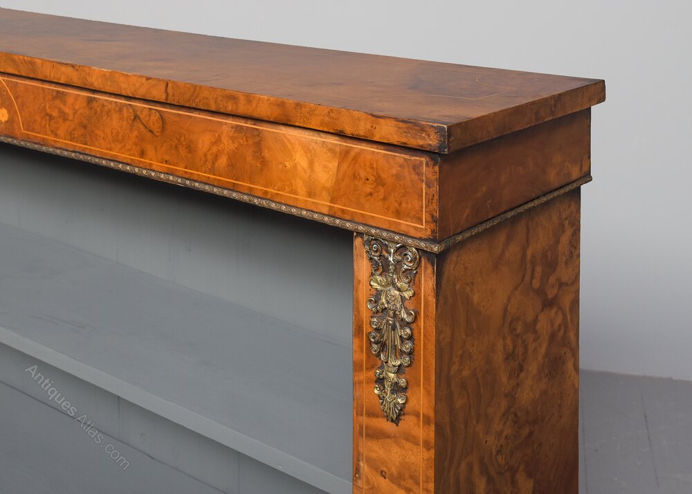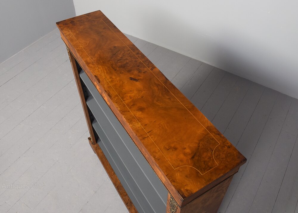 Victorian-style Inlaid Burr Walnut Open Bookcase