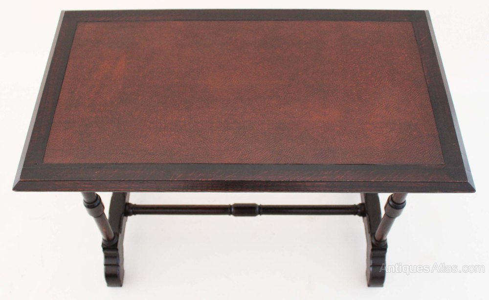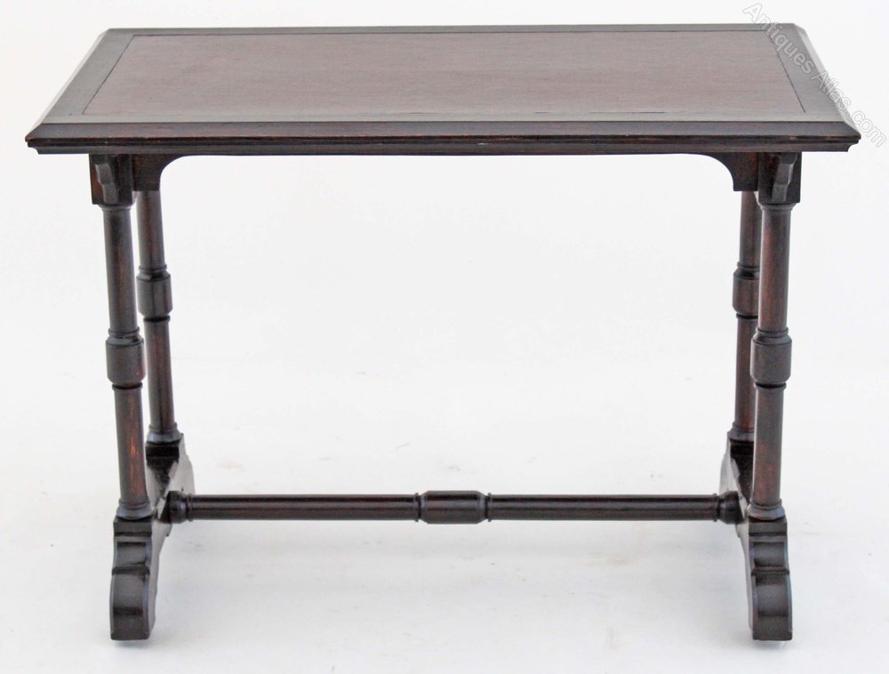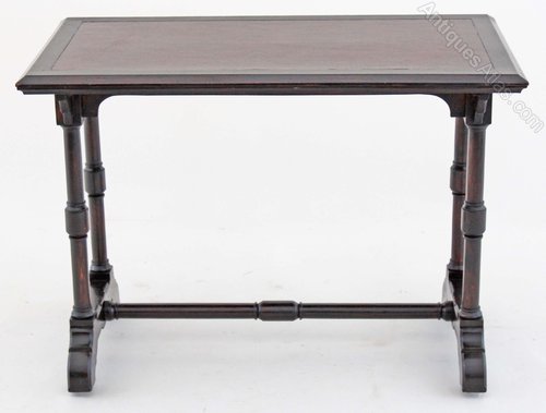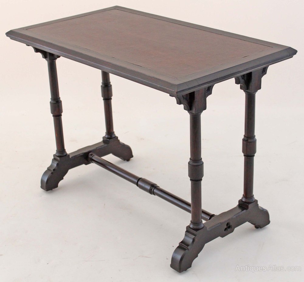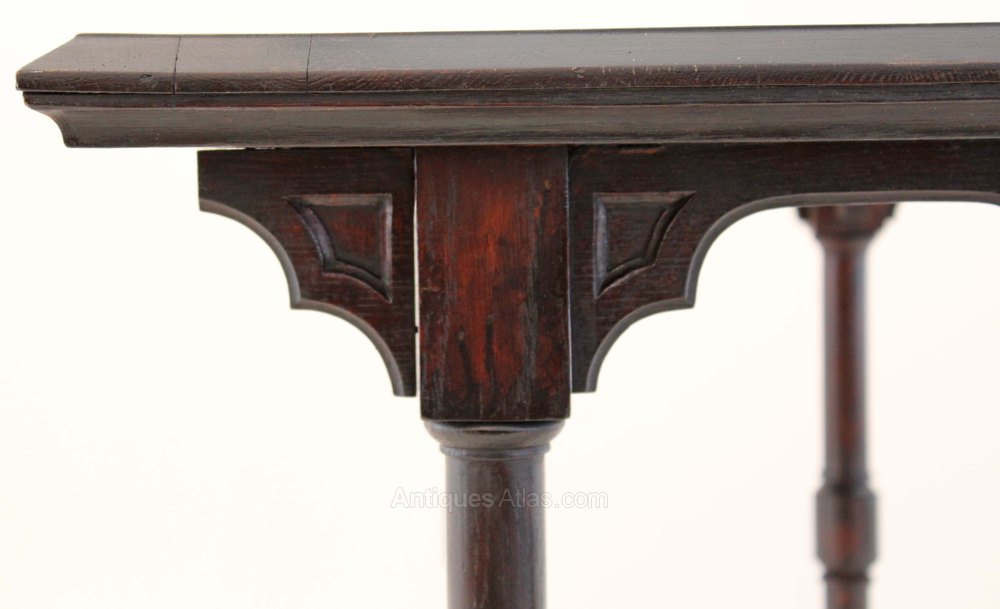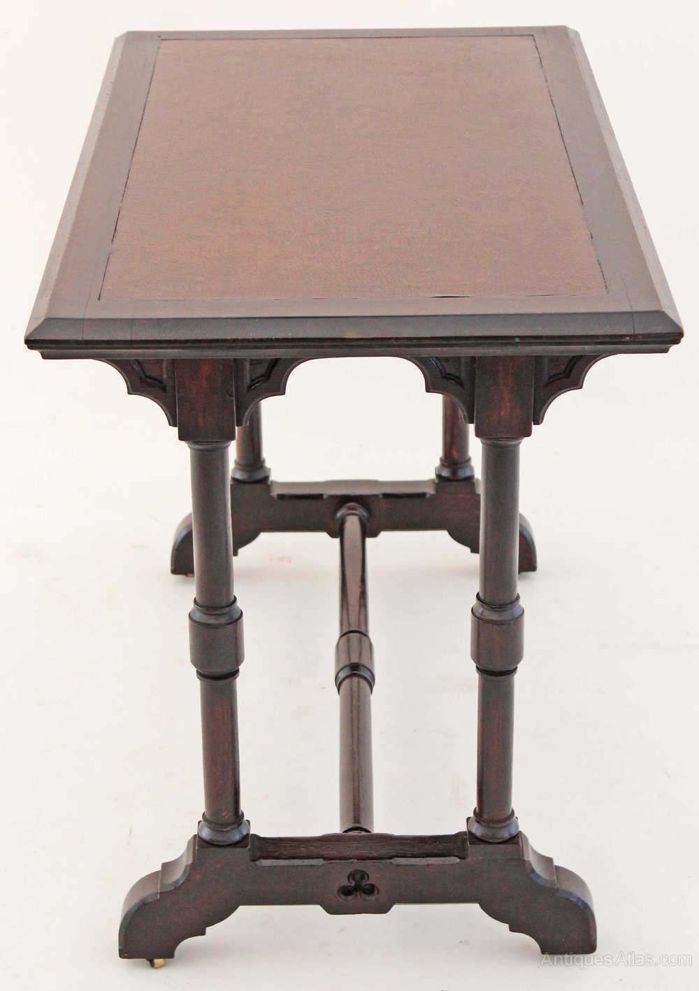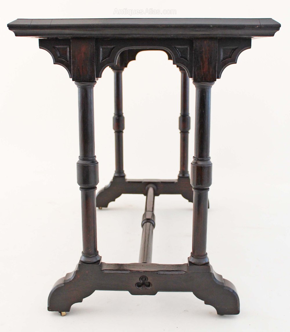 Antique Victorian 19C Gothic dark oak library writing desk table.