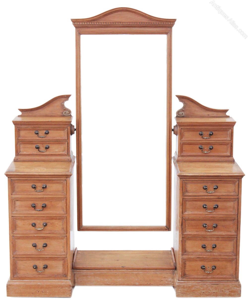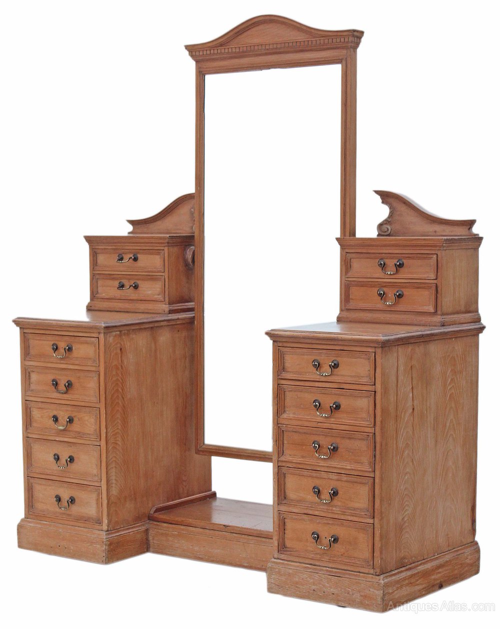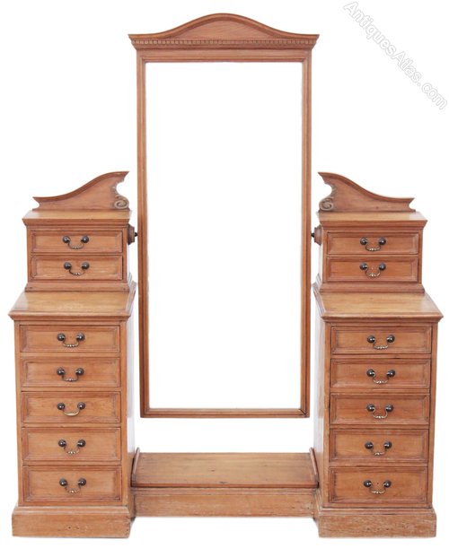 Antique large Victorian 19C pine twin pedestal dressing table.
