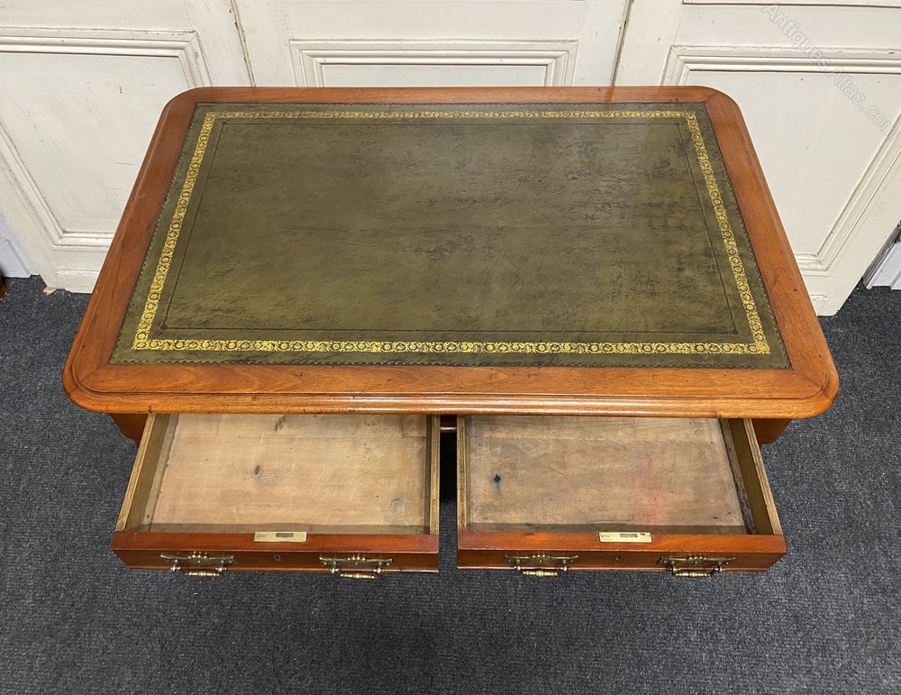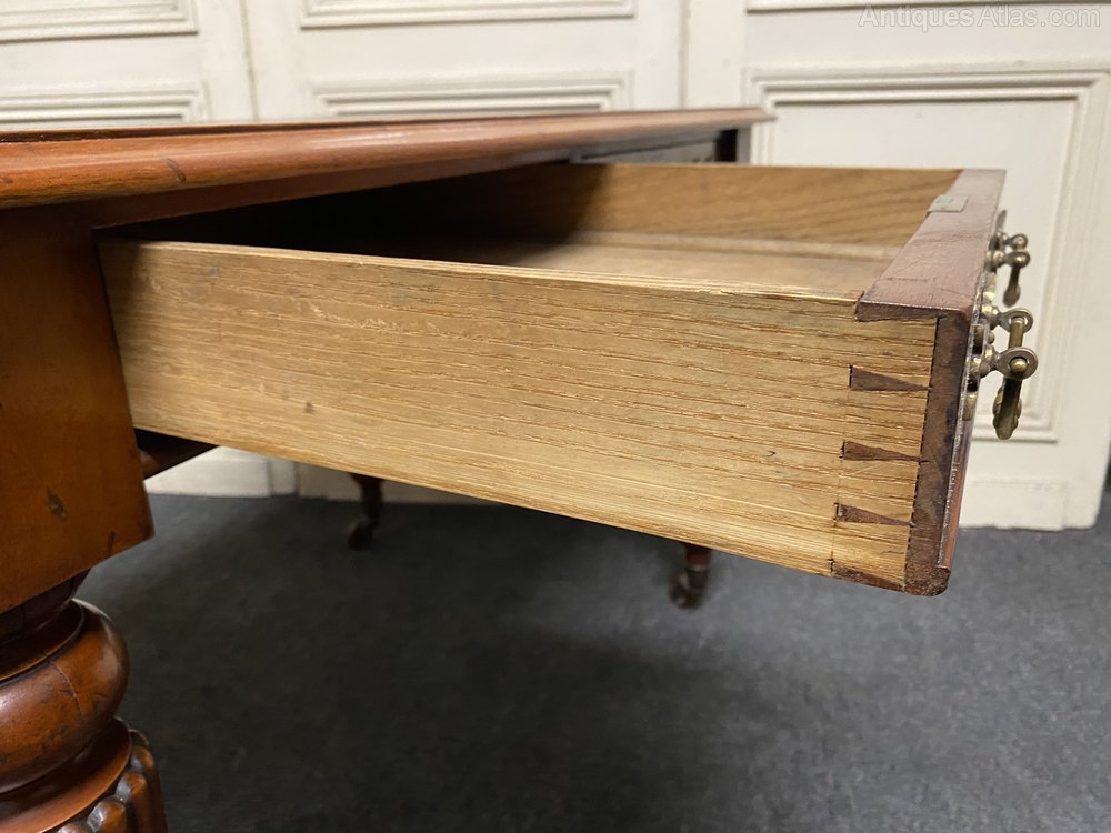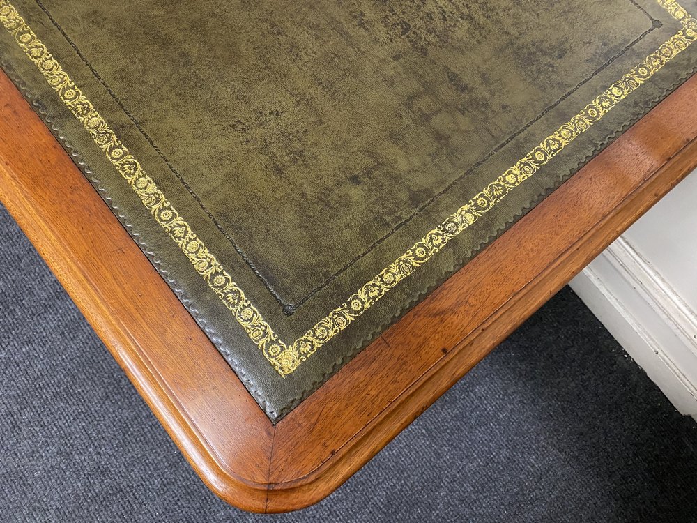 Antique Victorian Walnut Leather Top Pedestal Desk