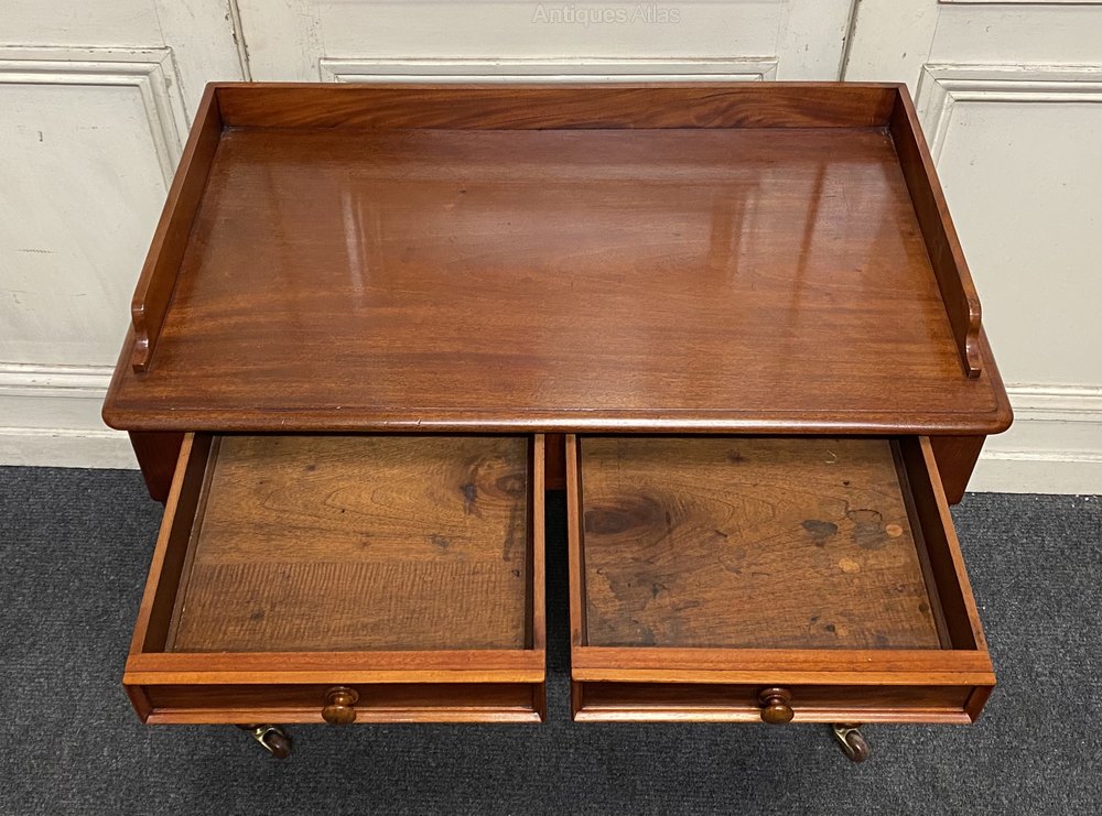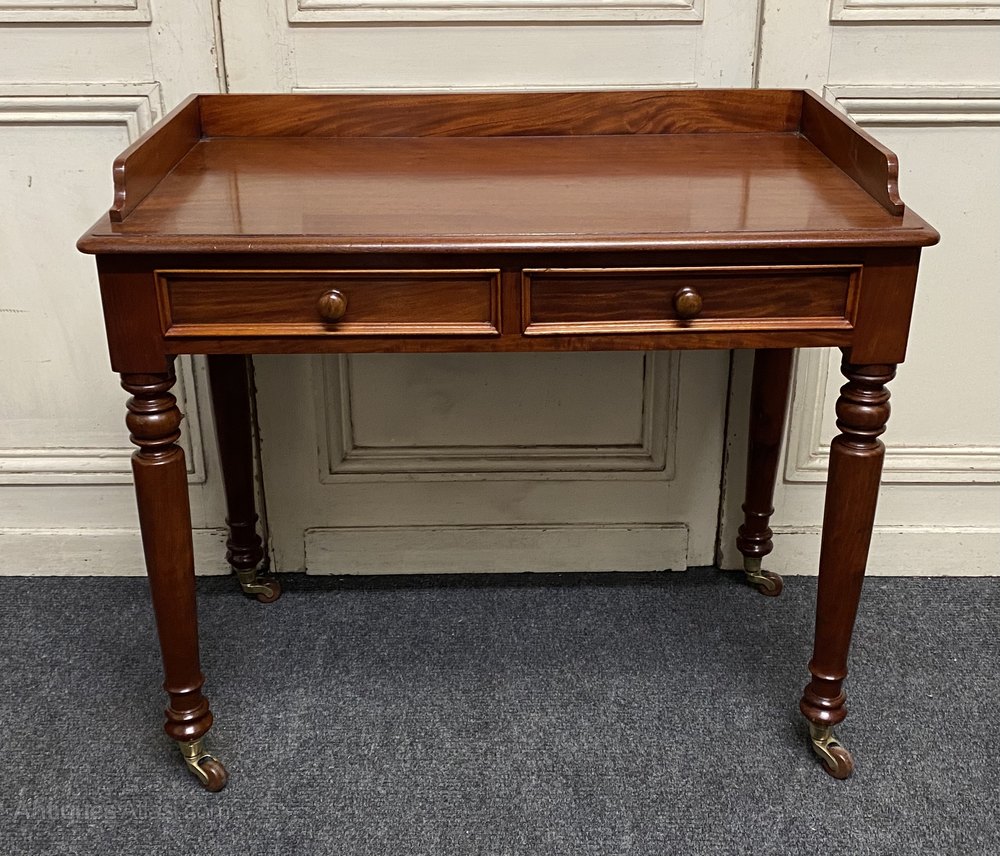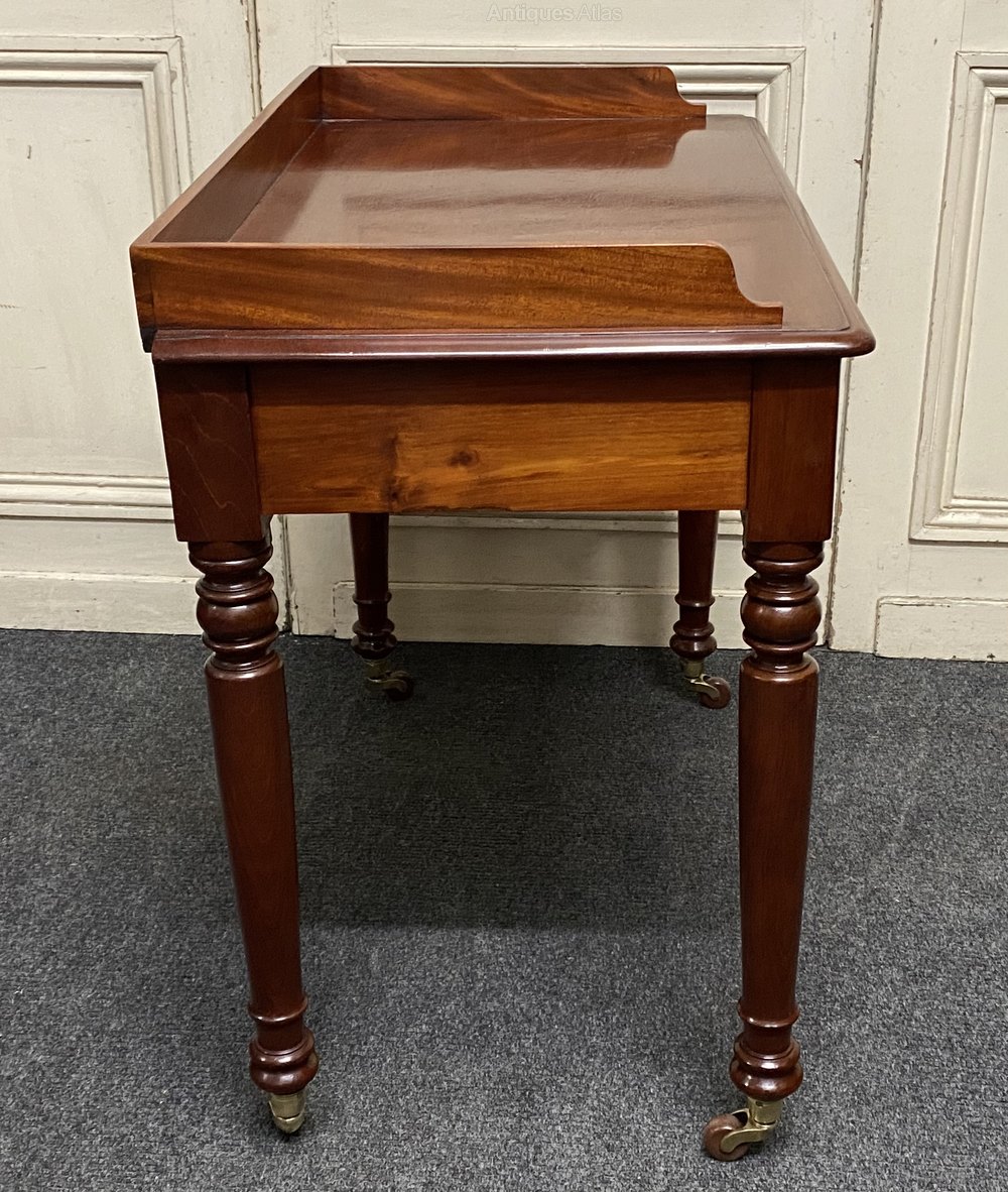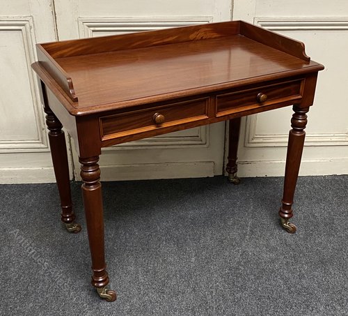 A nice quality Victorian Mahogany 2 drawer writing table or desk. The drawers run smoothly fitted with original handles. Good quality construction and nice brass casters.