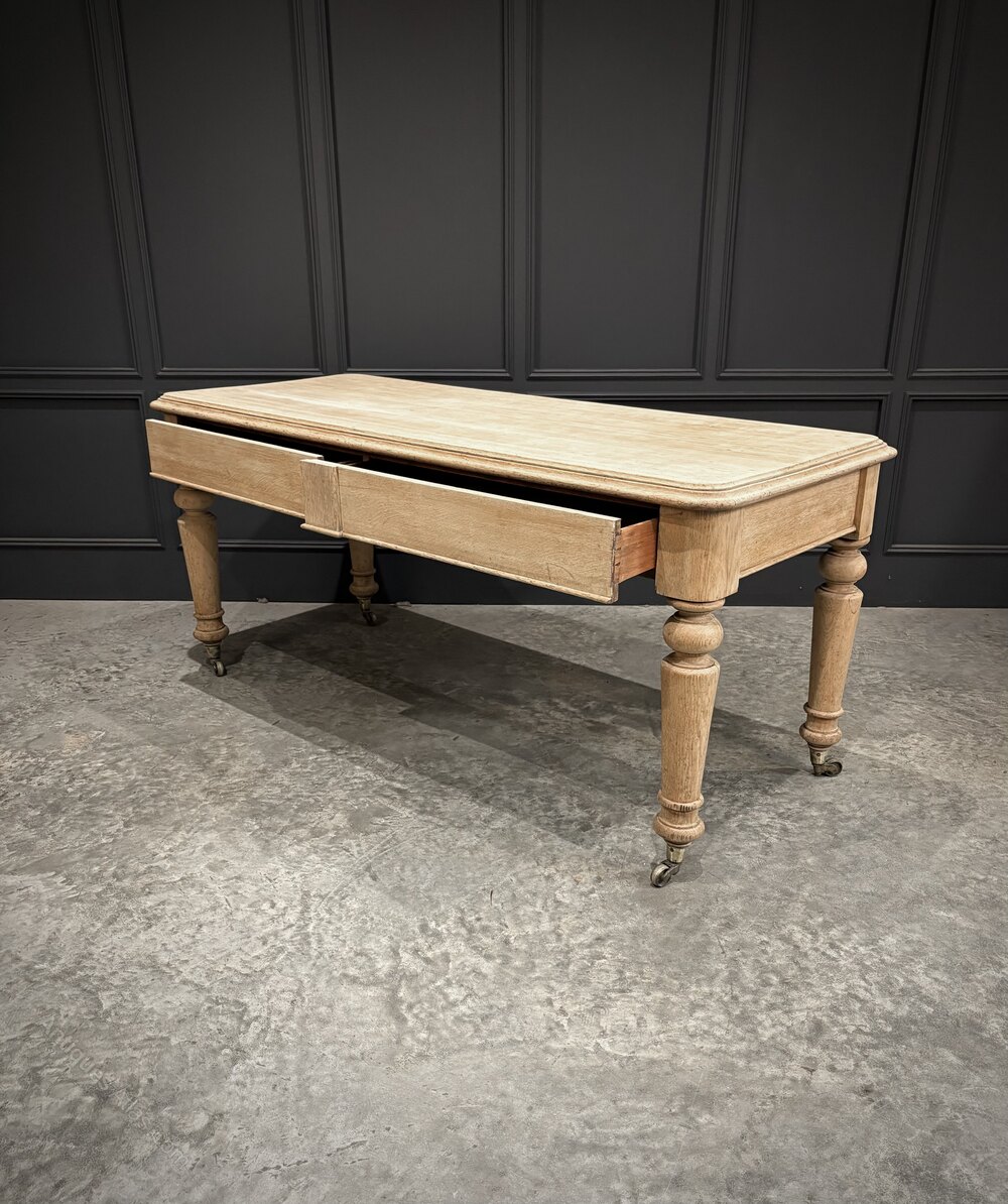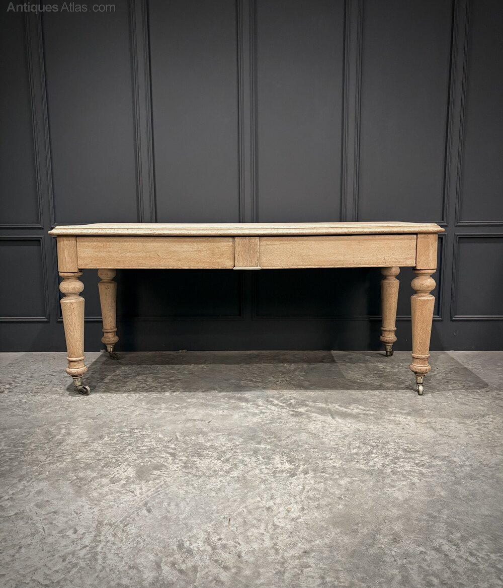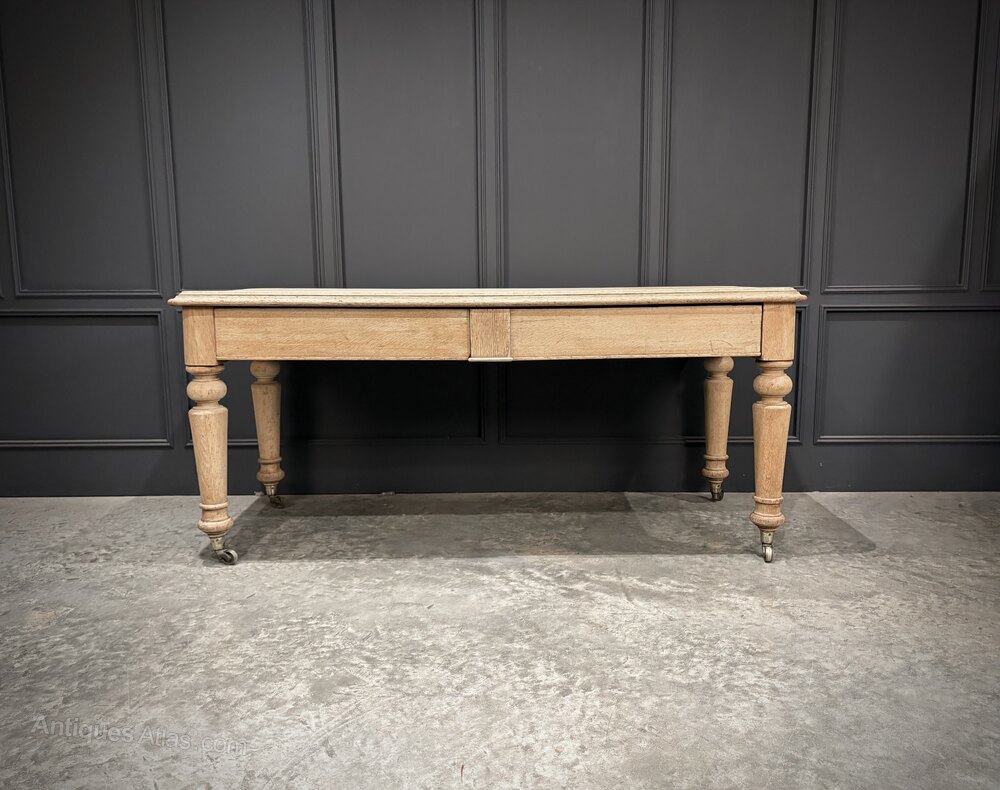 A fine Victorian bleached oak side table of substantial proportions, dating from the late 19th century. Crafted from solid oak, this piece has been sympathetically bleached to reveal the natural grain and give it a lighter, more contemporary finish while retaining its antique character.