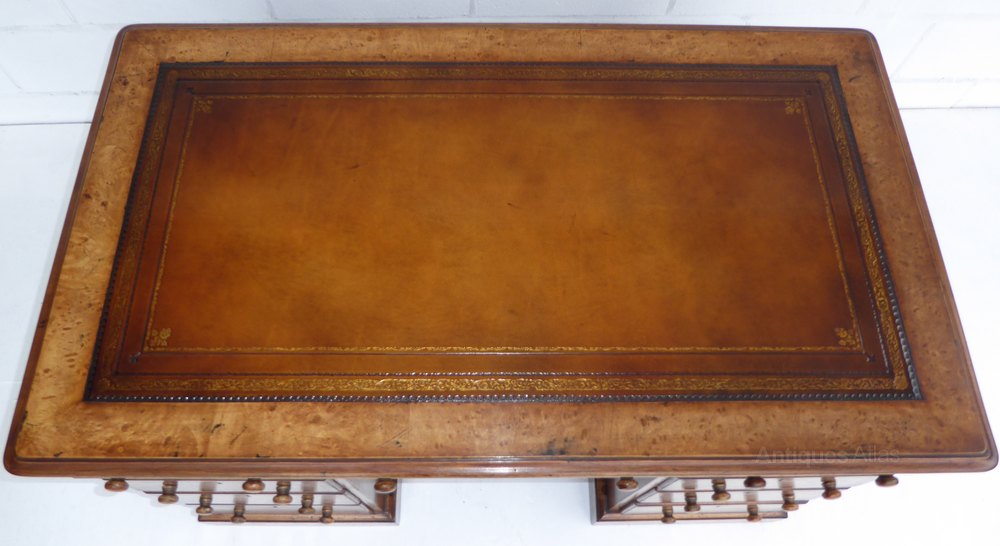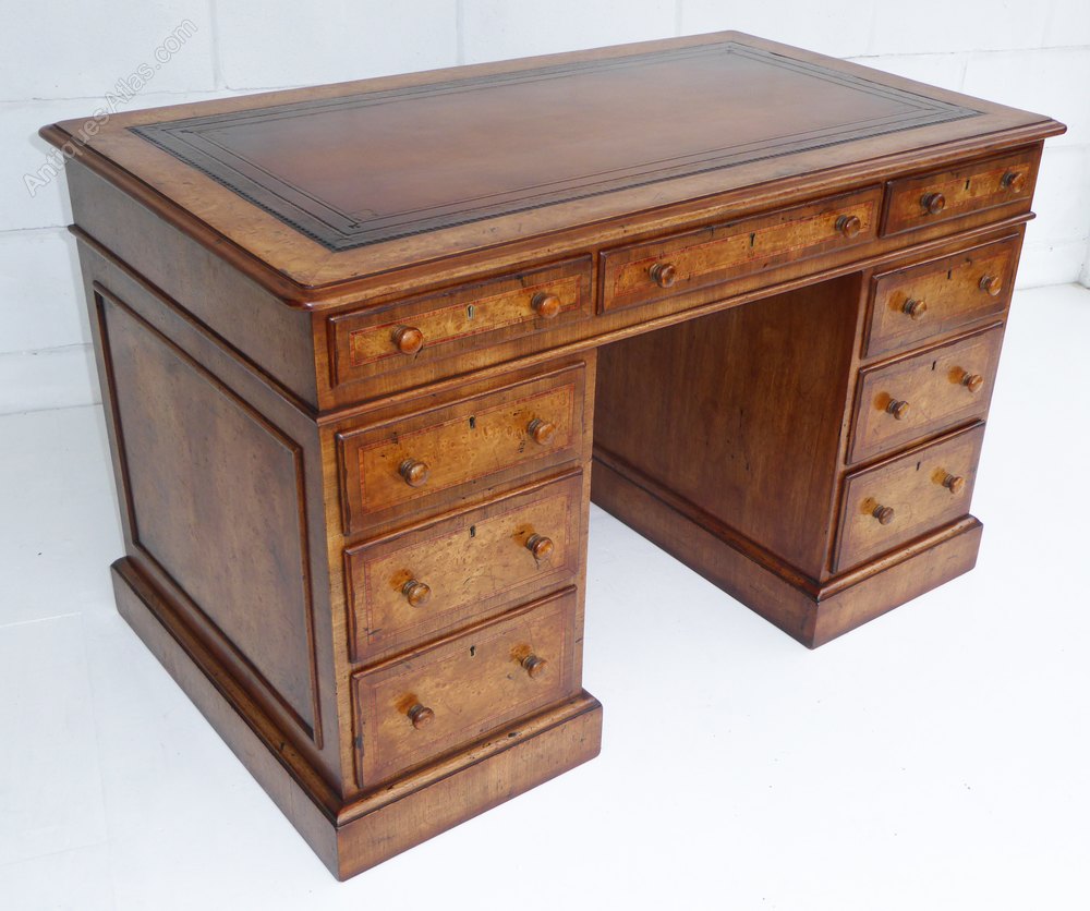 Victorian Burr Walnut Inlaid Pedestal Desk