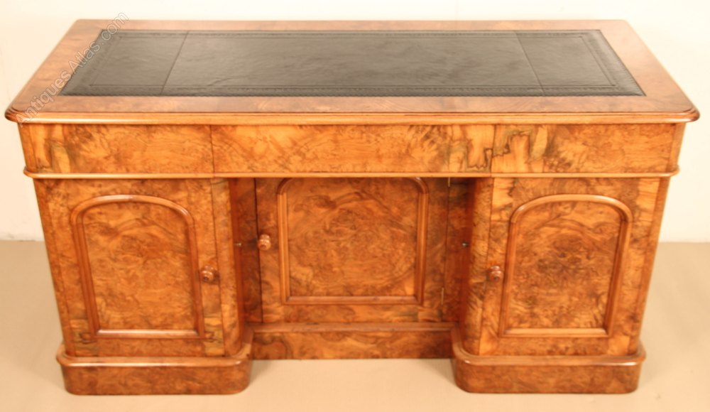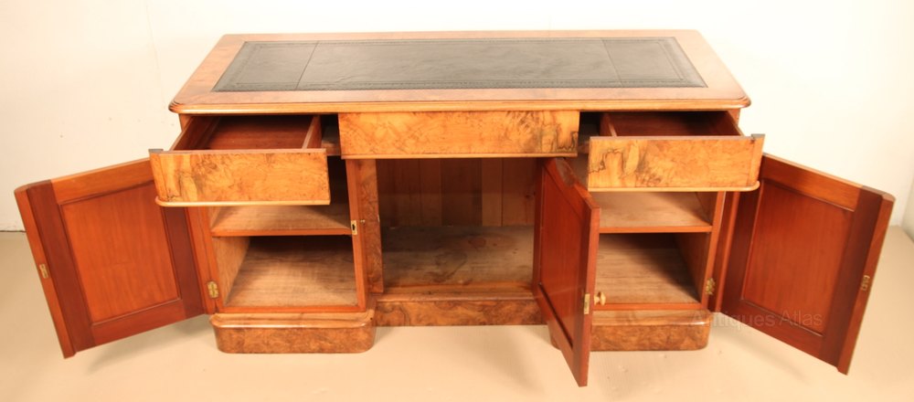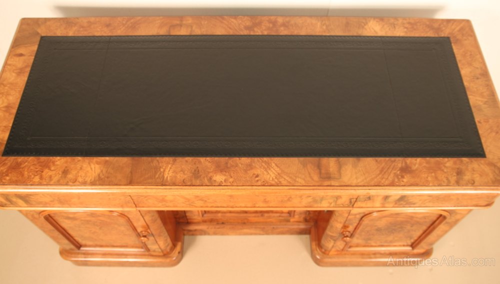 Antique Burr Walnut Pedestal Desk