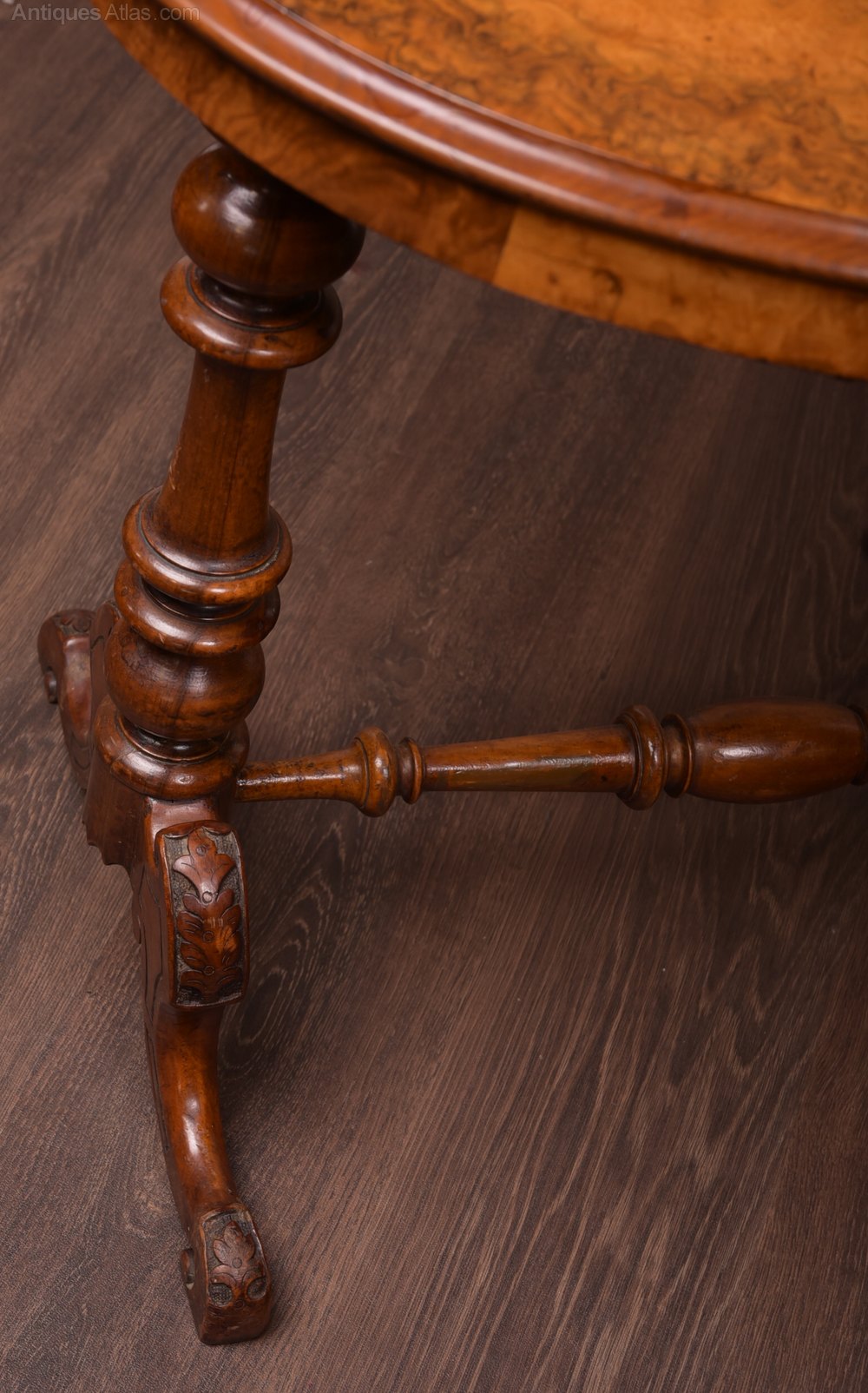 Victorian side made from stunning burr walnut veneers and crisp carved legs with a turned stretcher in fantastic condition