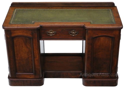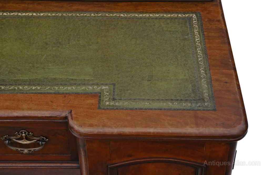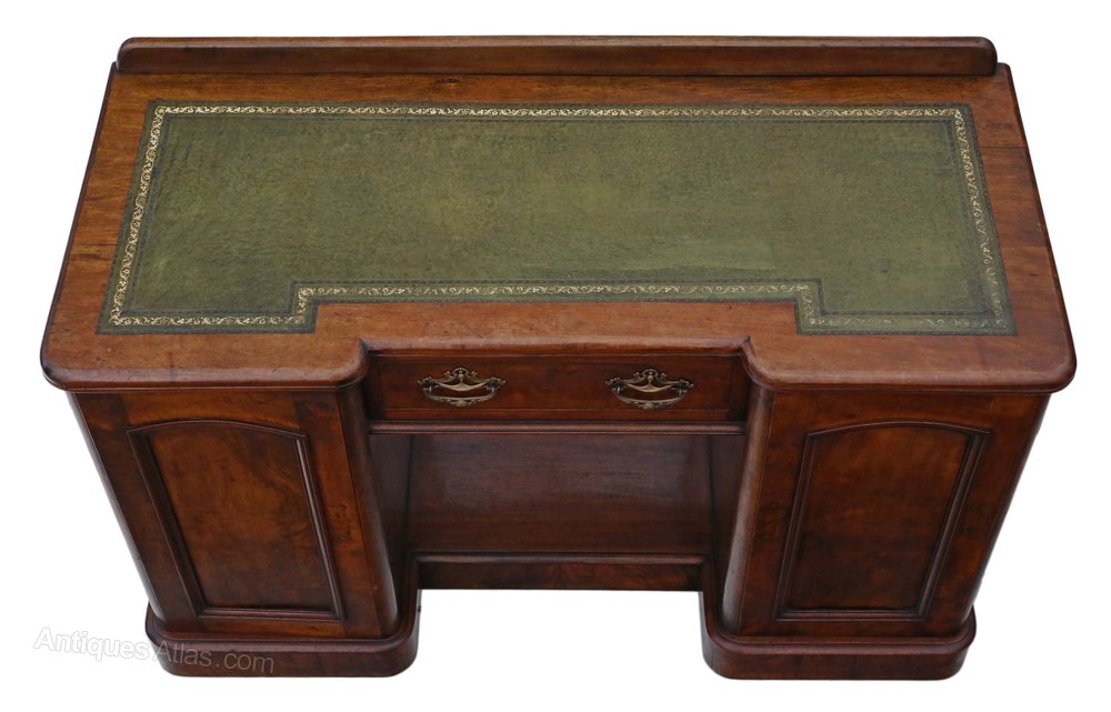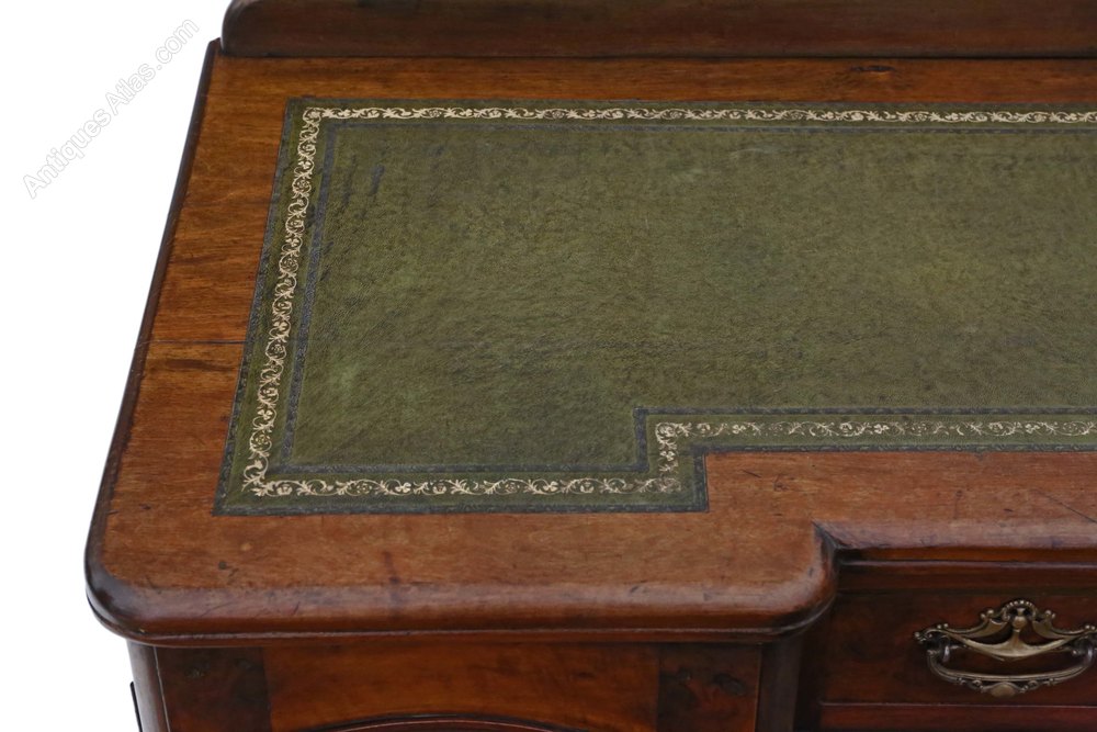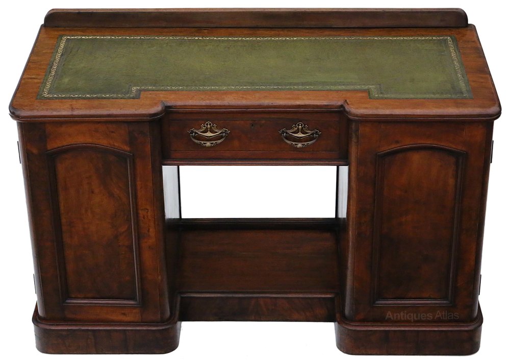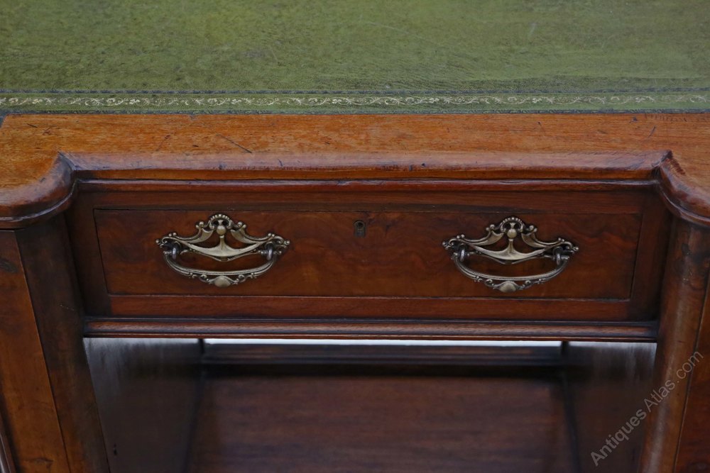 Antique Victorian Walnut Leather Top Pedestal Desk