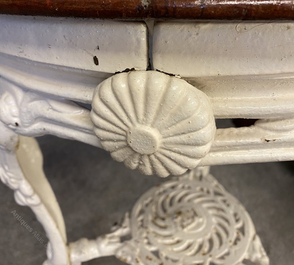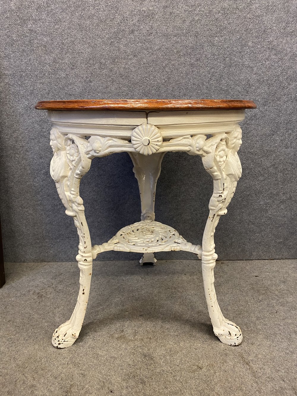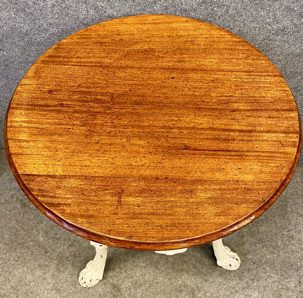 A good Victorian cast iron pub table with solid mahogany top. The heavy cast iron base in very good condition with no breaks or repairs. The table is marked with the foundry makers initials M.E. An ideal conservatory or outside garden table. Dimensions:- Height… 28.5”/ 72cm. Diameter… 29”/ 73.5cm. Delivery to most of U.K. mainland £50