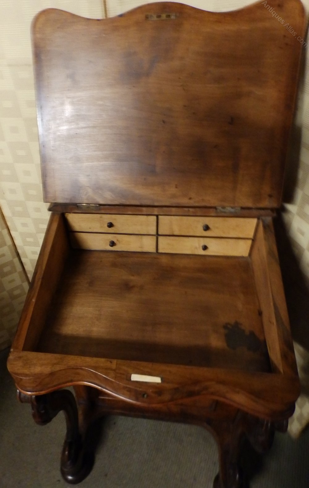 Antique Mahogany Leather Top Bonheur Du Jour Desk