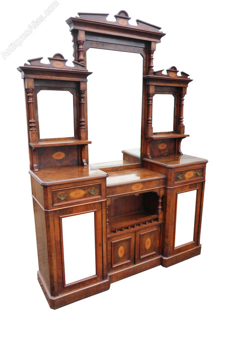 Victorian Figured Walnut Mirror Back Credenza