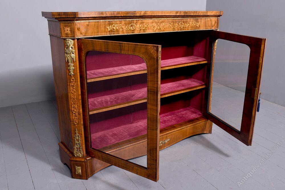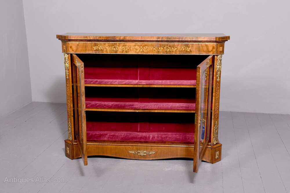 Victorian Figured Walnut Two-door Glazed Cabinet