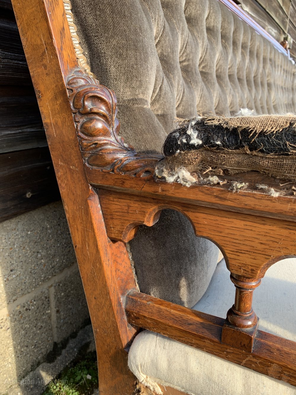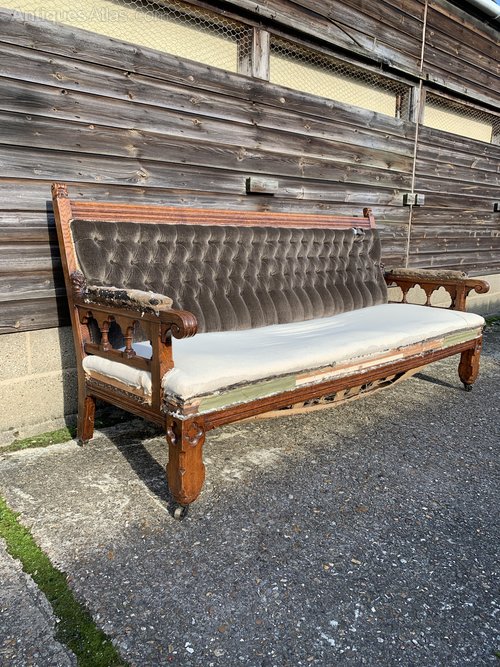 Victorian Gothic Oak Settee.