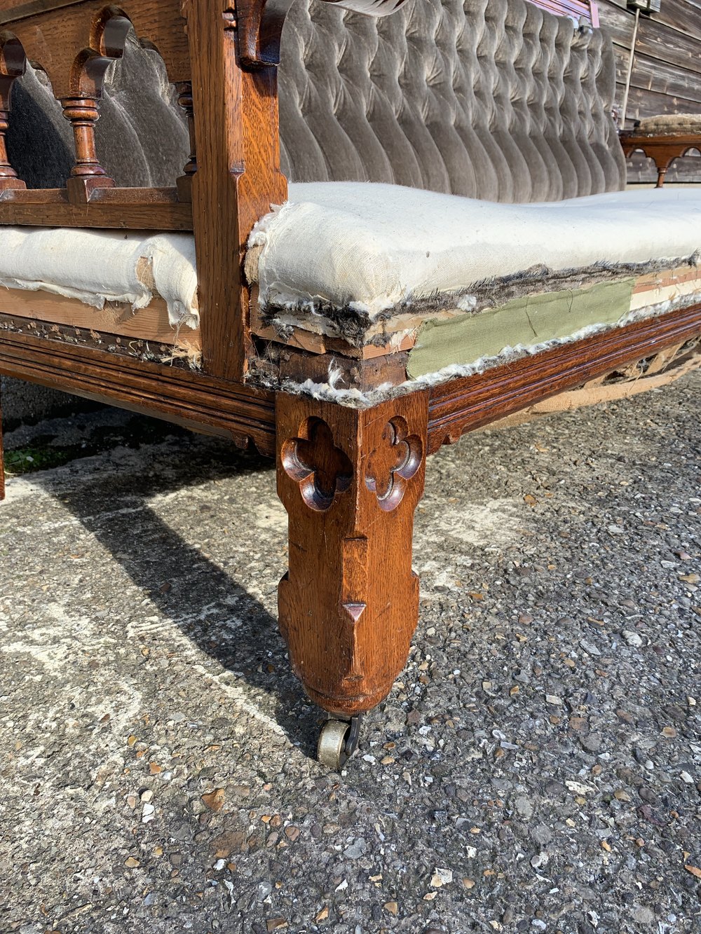 Victorian Oak gothic four seat settee.
