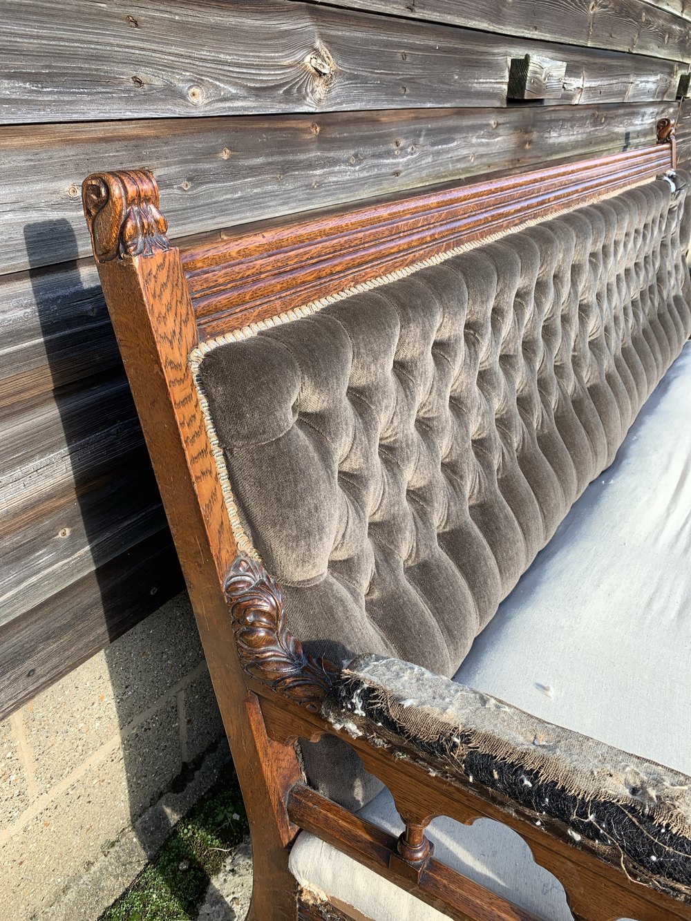Needs reupholstering but frame is sound.