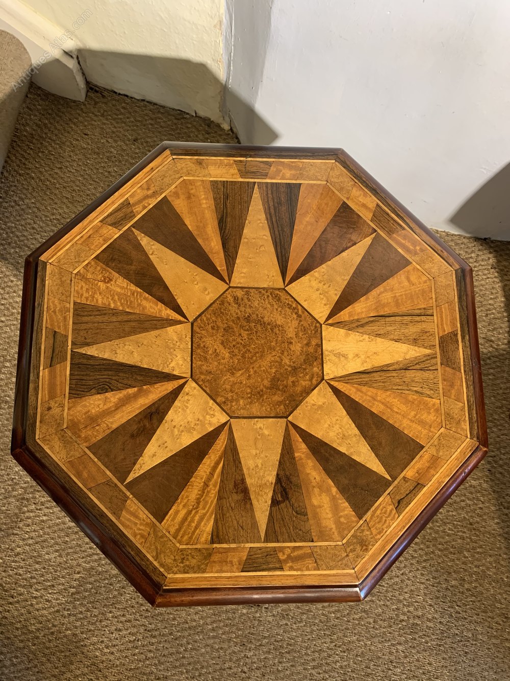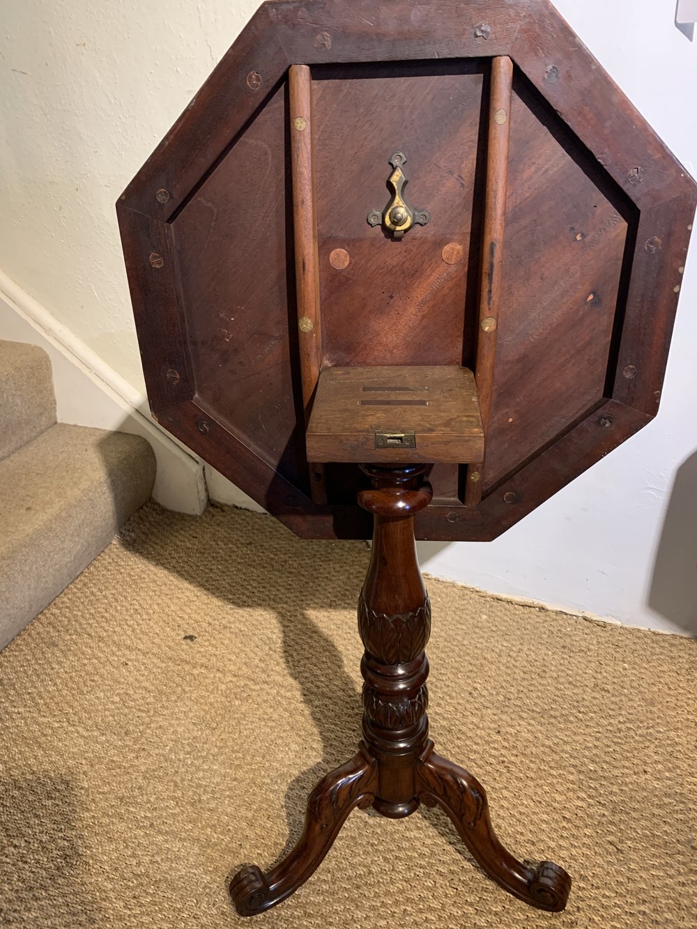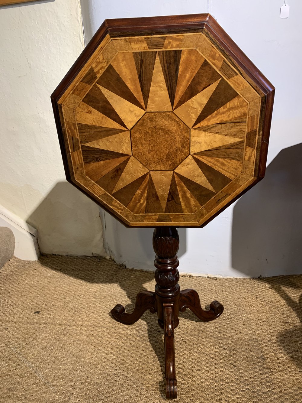 Fabulous Victorian lamp or side table , solid mahogany pedestal , the tilt top is veneered with some wonderful specimen woods
