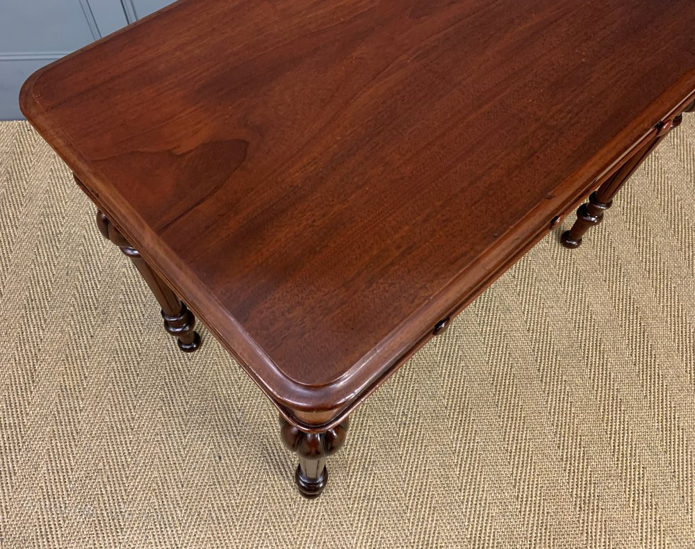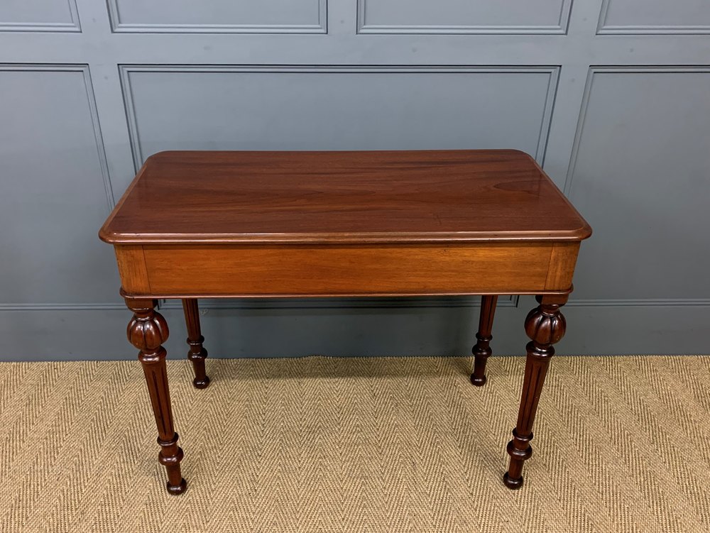 A pretty mid-Victorian period 2 drawer mahogany side table. Of very good construction and in excellent condition, with a good colour and patina. With 2 drawers and standing on elegant turned legs. This table is finished to the rear so could be free standing with a room if desired.