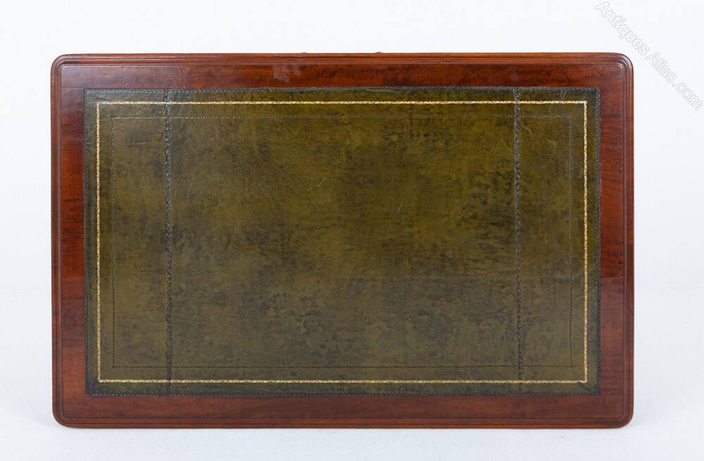 The Top of the Table Having a Fitted Green Leather Writing Surface (replacement) Wit Hand Applied Gilt and Blind Tooling and Mahogany Crossbanding.