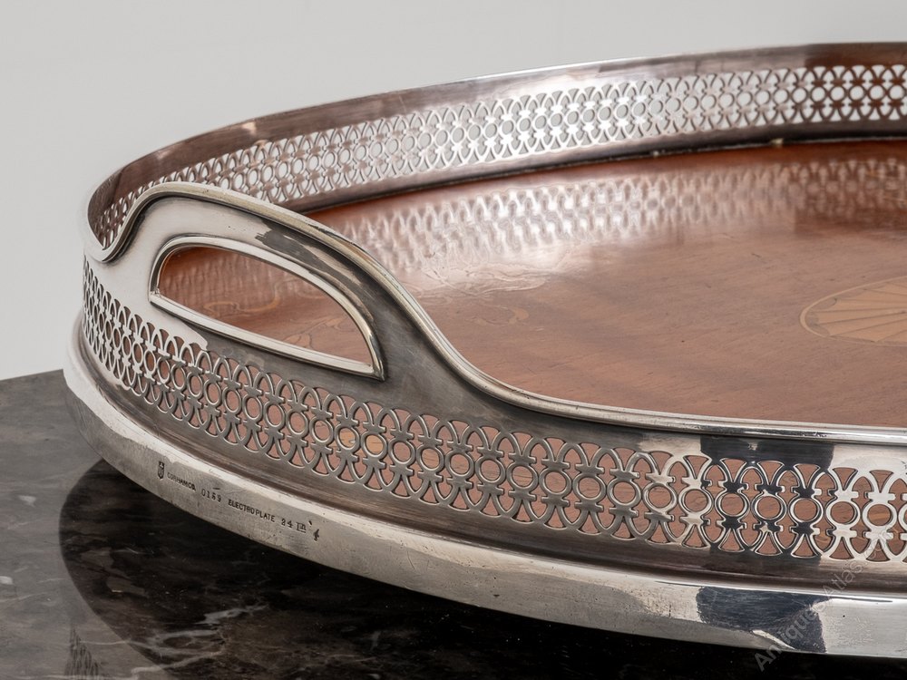 Victorian Mahogany and Silver Plate Tray (Gorham and Co).
