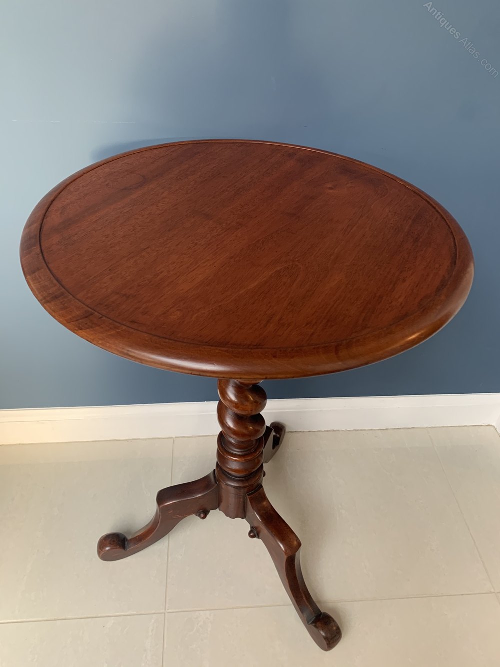 A fine example of a tripod table, in solid mahogany on a striking turned bobbin column set with a well polished round top.