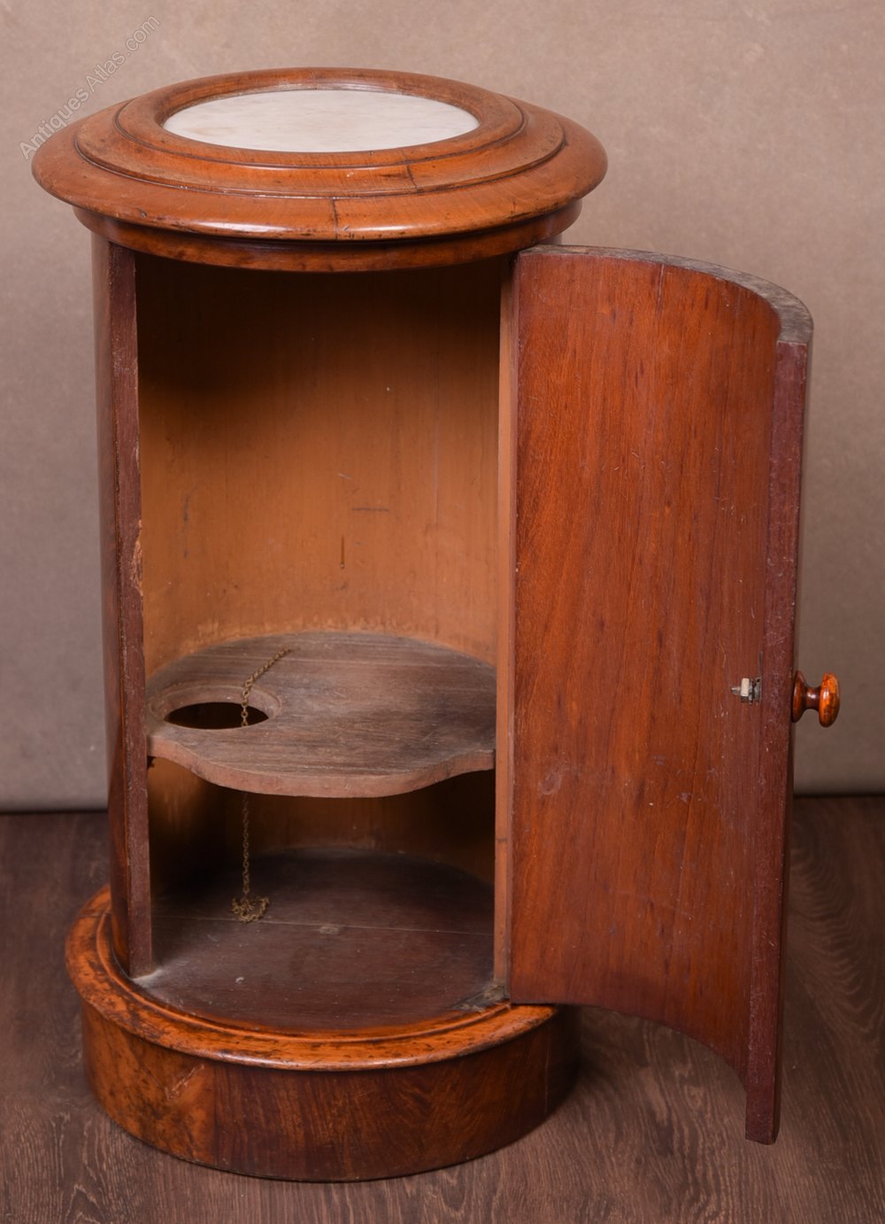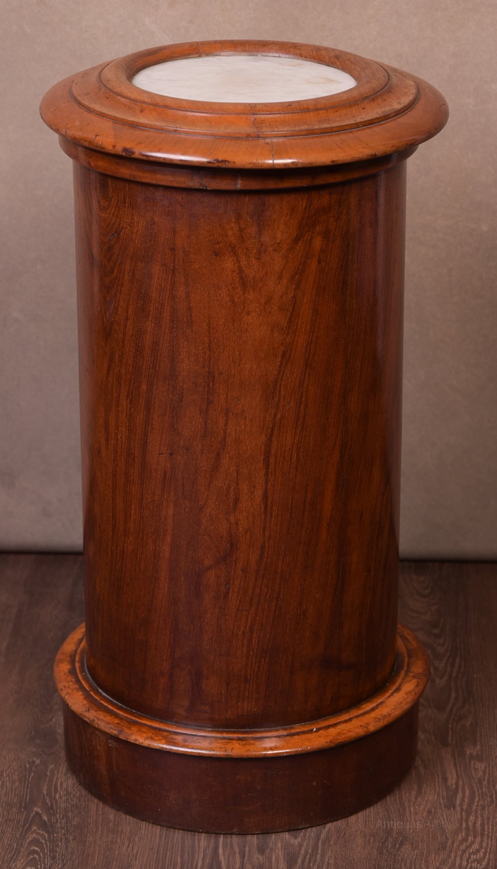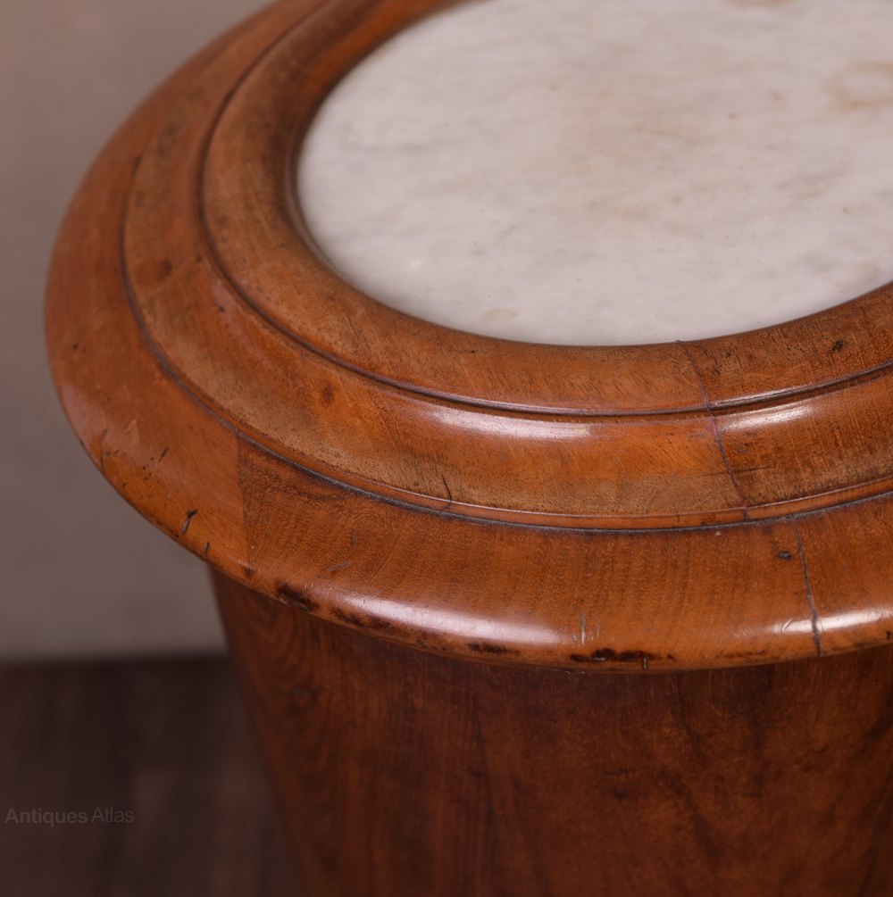 This Unusual Victorian Cylindrical Bedside cabinet made from beautiful rich Mahogany veneers with an inset marble top raised on a plinth base in excellent original condition,