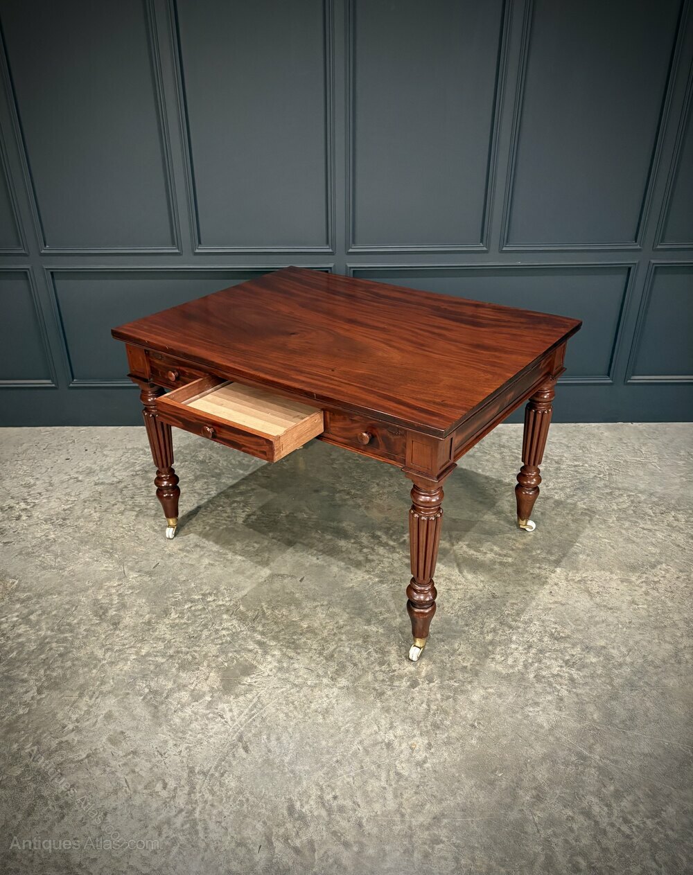 A rare and attractive early Victorian mahogany extending writing table, circa 1840, of notably fine quality and very much in the manner of Gillows.