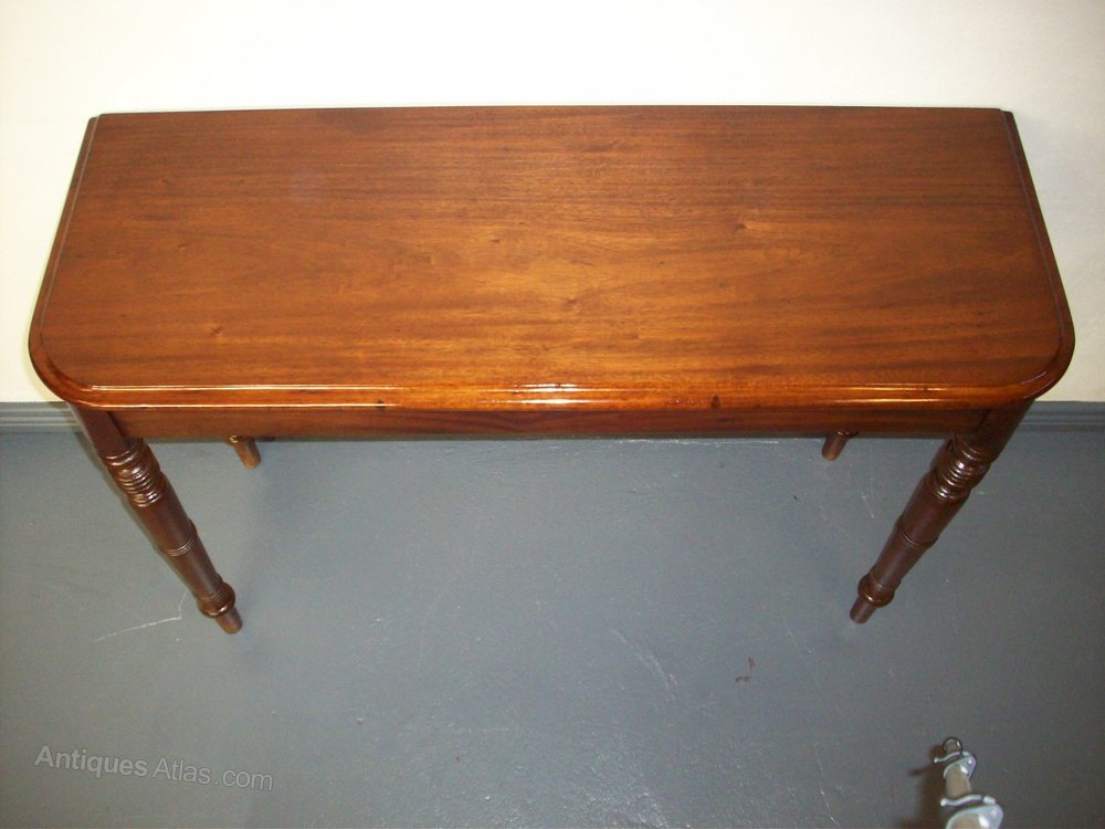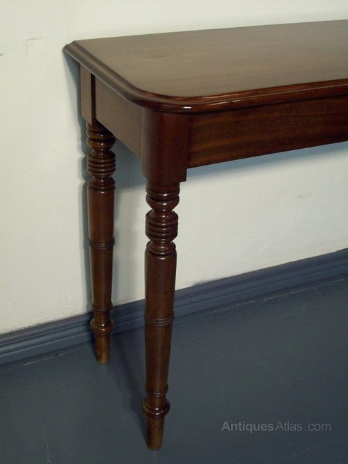 Victorian Mahogany Side / Hall Table with Rectangular Top with thumb edge moulding standing on four tapering ring turned legs the table is in overall Excellent Condition.
