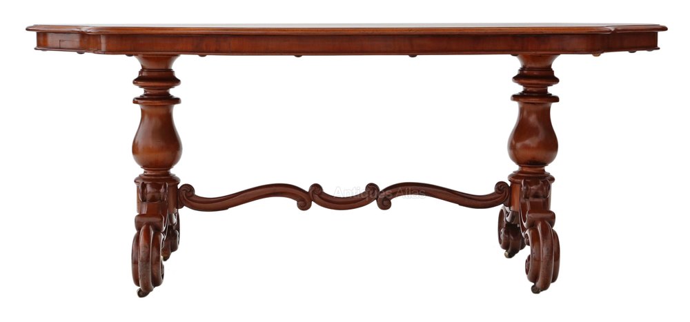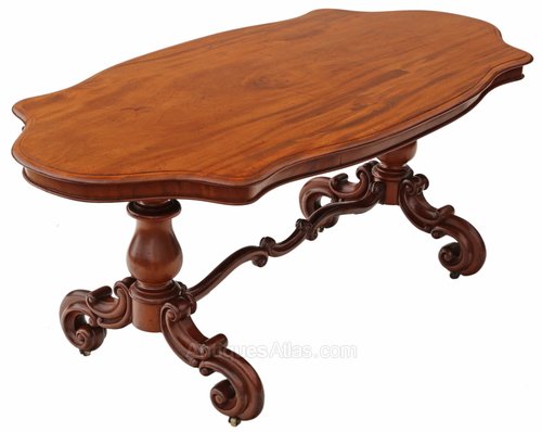 Antique large Victorian C1850 mahogany serpentine centre loo dining table.