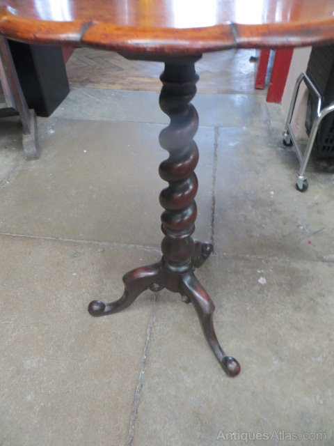 Antique Mahogany Scalloped Edge Side Table with Barley Twist Column