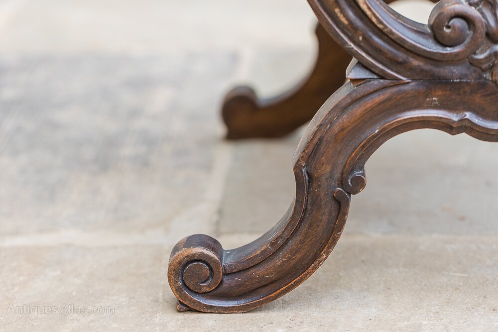 Victorian large Walnut & Carved Stool,