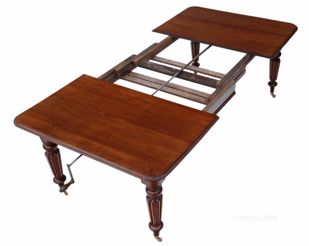 Antique large 2 leaf Victorian windout extending dining table approximately 8' x 4' (see exact dimensions below) when extended.