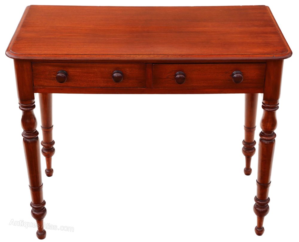 The table is solid and strong, with no loose joints and the mahogany lined drawers slide freely.