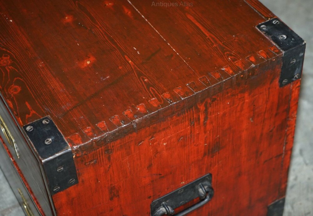 I’ve not seem a campaign chest before in pitch pine, nor have I seen one with hand hammered wrought iron fixtures and fittings. Most likely this was a junior officer of a lesser statue with limited funds hence the use of cheaper materials, which makes this piece a rather rare survivor.