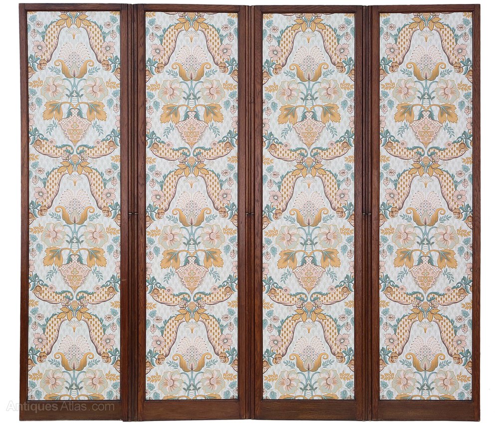 Antique large Victorian C1880-1900 oak dressing screen room divider.