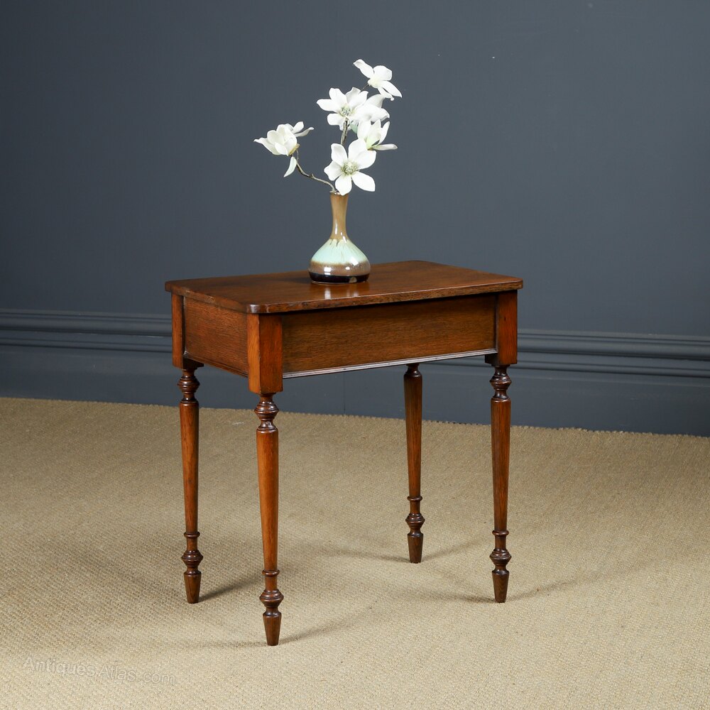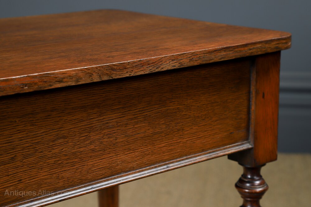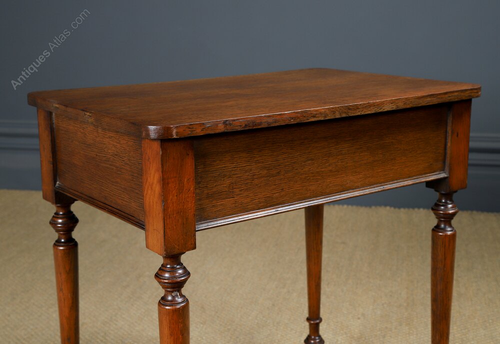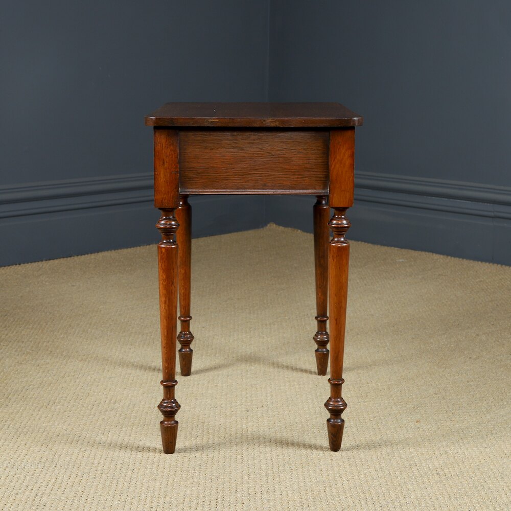 Condition This a good quality antique English late Victorian occasional table, constructed from solid oak, comprising four elegant turned legs, circa 1900, in excellent condition. Ideal as a display stand, bedside or lamp table in the home. The oak side table has been cleaned and wax-polished to a professional standard in our workshop, therefore, it boasts a stunning colour, whilst retaining its original patination. This display table is solid in joint and ready to use.