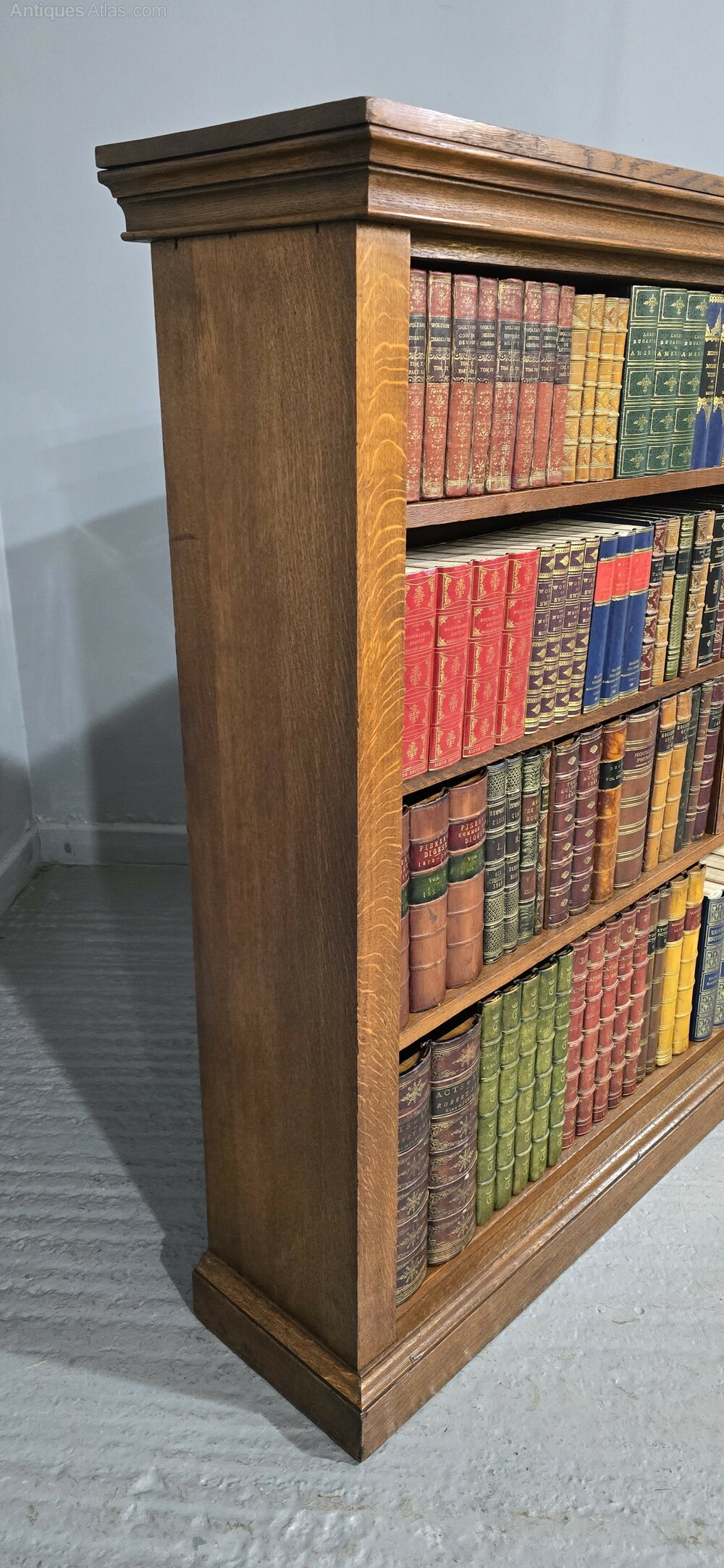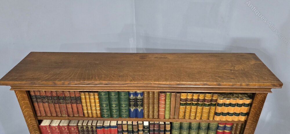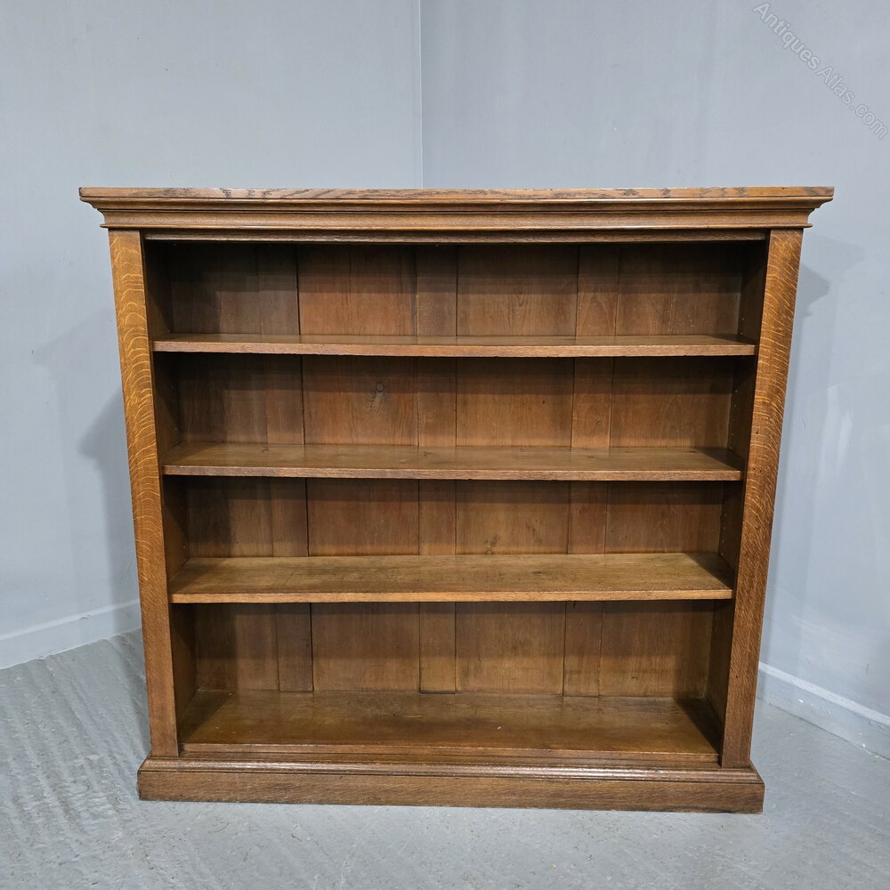 Very nice Victorian golden oak open adjustable library bookcase, with three oak fronted shelves, in overall excellent condition.