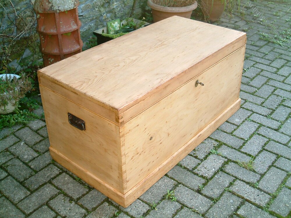 19th C Victorian Pine Iron Bound Travelling Trunk