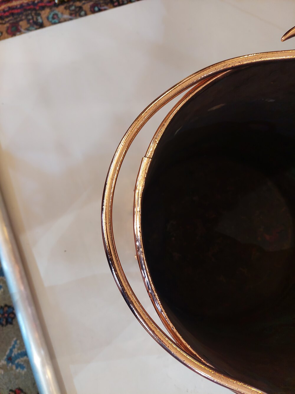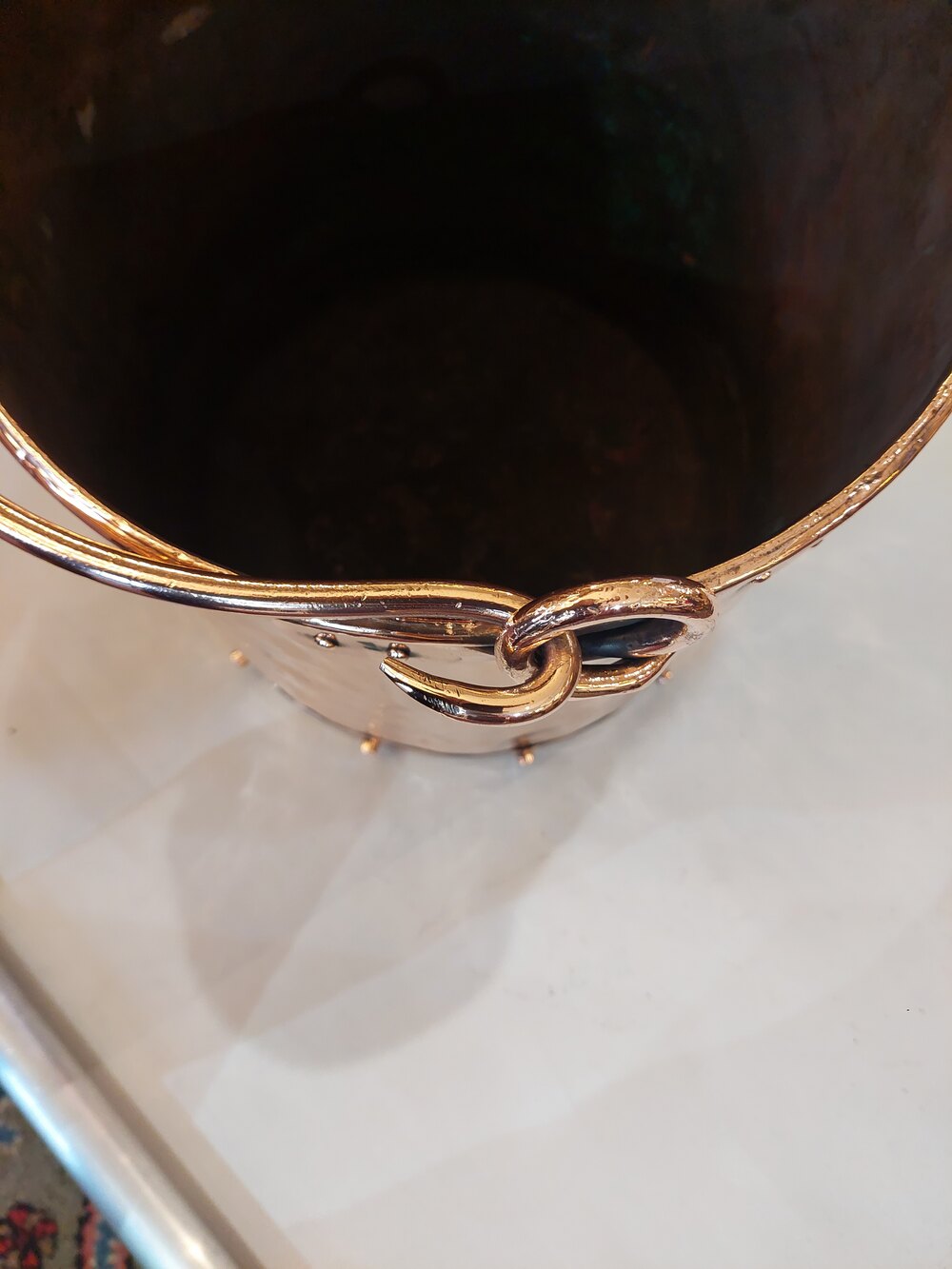 Victorian Copper Coal Bucket with Prominent Rivets and Copper Handle - 14" diam x 14"h
