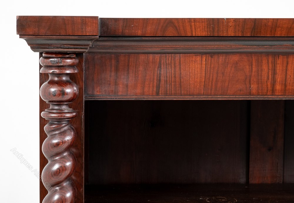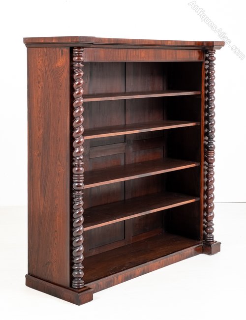 The Four Fully adjustable Shelves being Flanked by Turned and Barley Twist Columns.