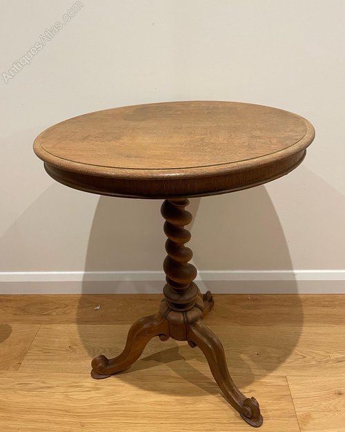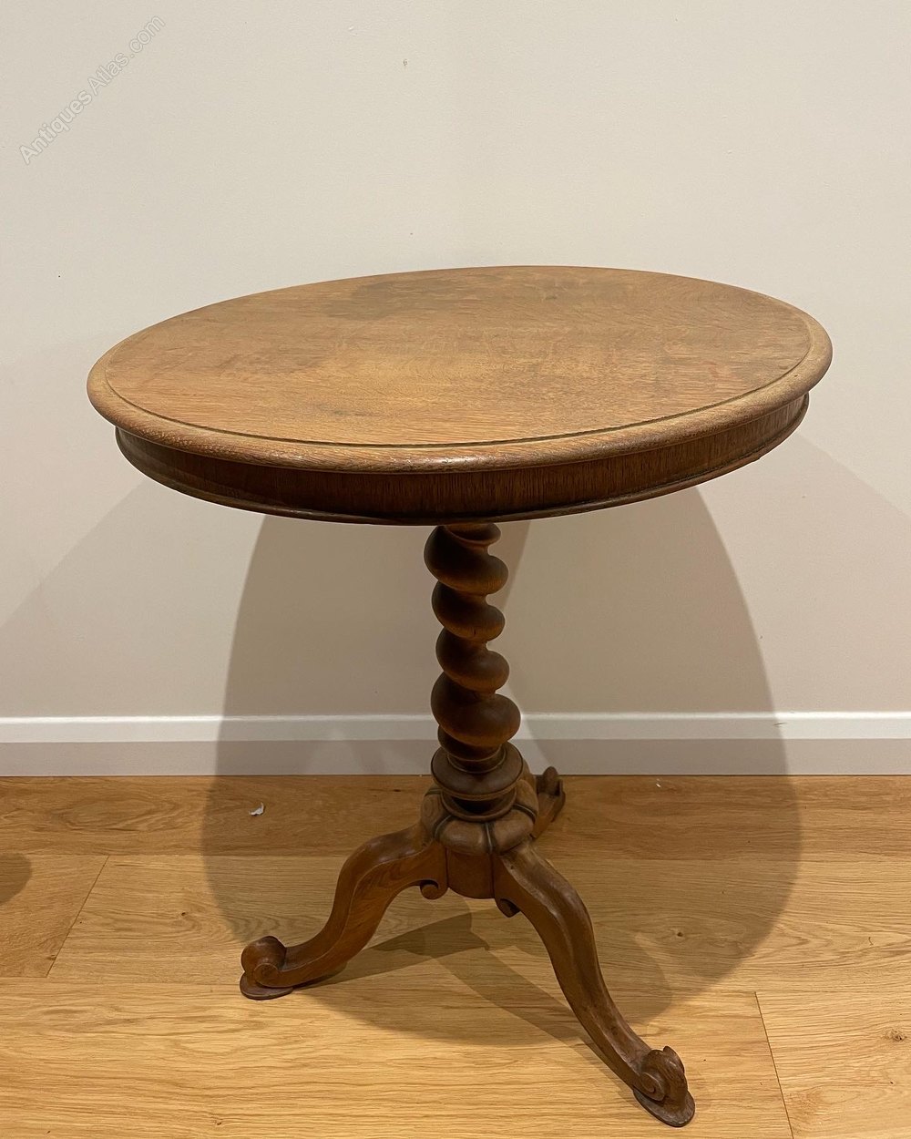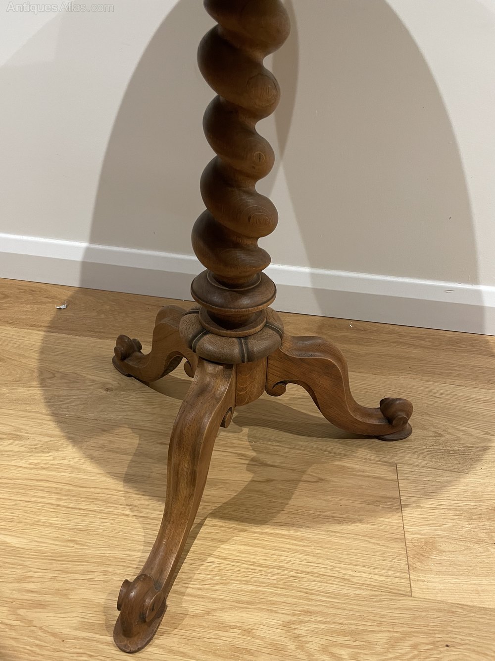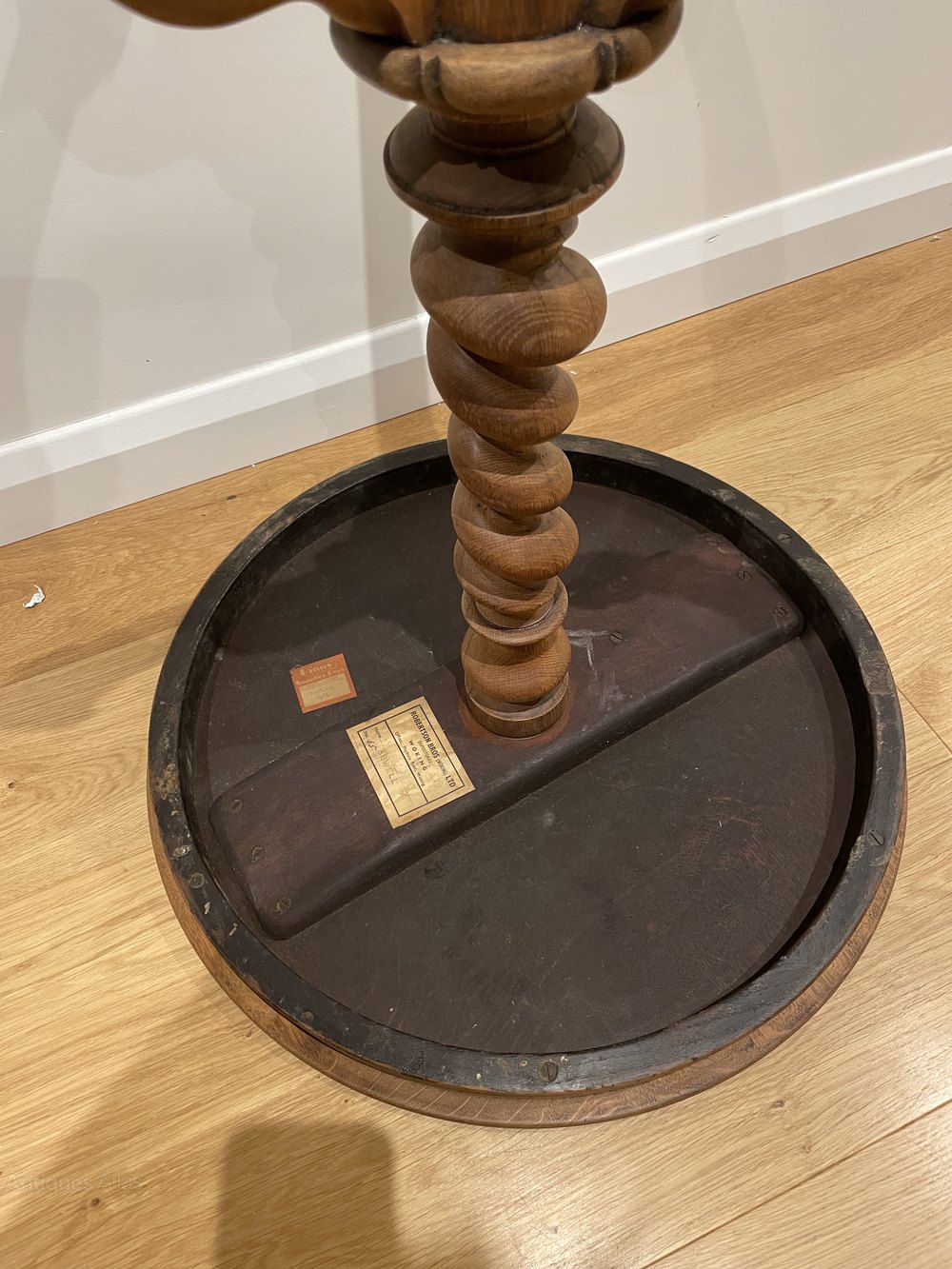 Dating to around the 1860’s a wonderful graduated barley twist column , with old depository labels on the underside side , This table would look great in a traditional setting or a more contemporary space