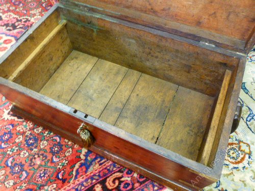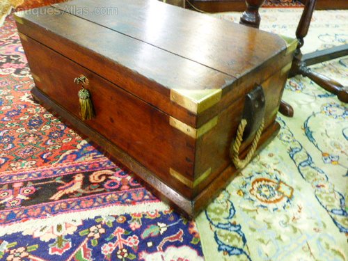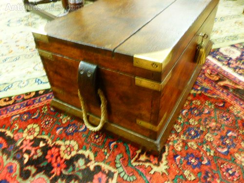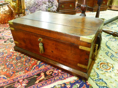 A good sturdy Seaman's Chest, Victorian c.1850. Clean interior with strong traditional rope handles to each side and brass fittings to sides and corners for extra protection to the naval trunk.
