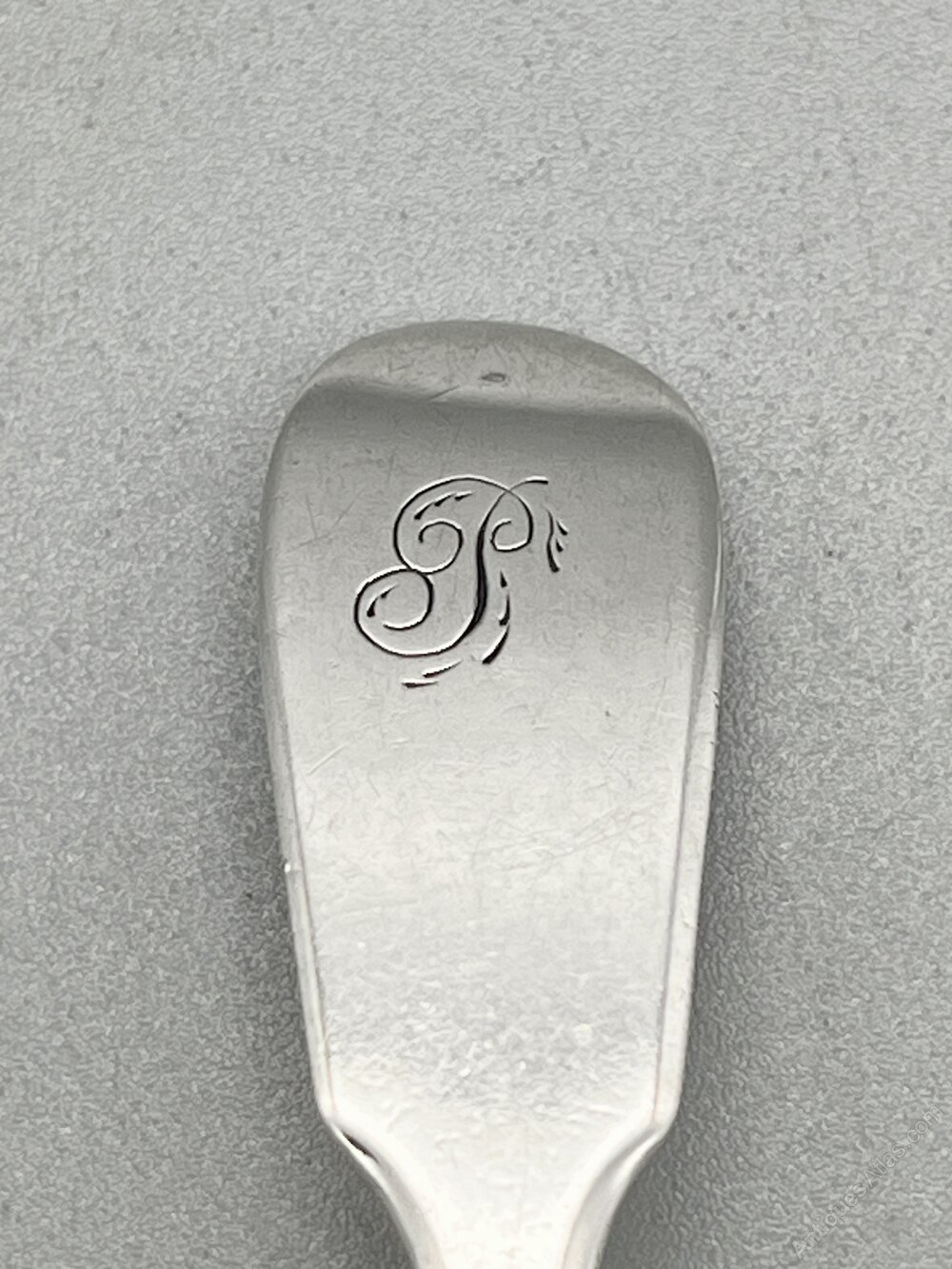 This is a well made Victorian Sterling Silver Mustard Spoon in the traditional Fiddle pattern. The letter P is elegantly engraved at the top of the stem.