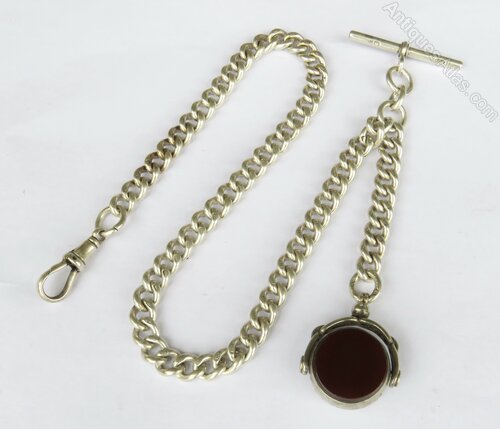 Victorian Silver Pocket Watch Chain And Swivel Fob