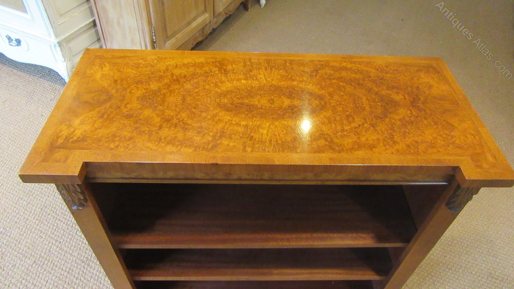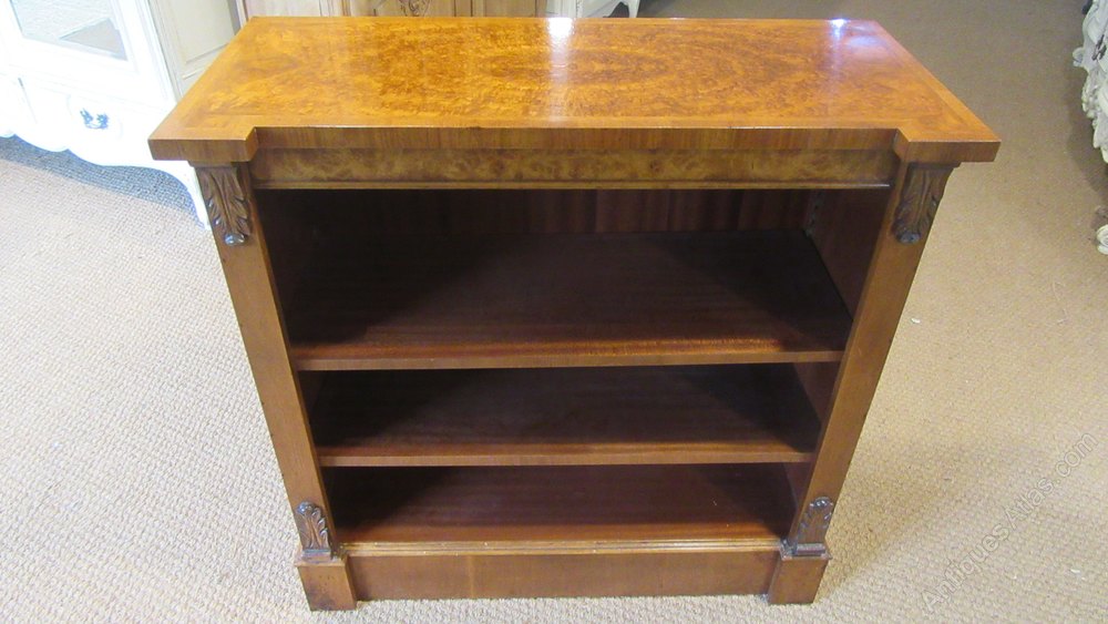 Victorian Style Burr Walnut Breakfront Open Bookcase with Adjustable Shelves 92 cm high 92 cm wide 41 cm deep