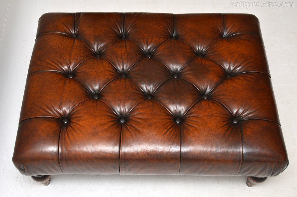Antique Victorian style deep buttoned leather stool on turned legs with brass caps. It’s in good original condition & the leather has lots of character. I don’t think it’s much more than 50 years old, but it actually looks older.